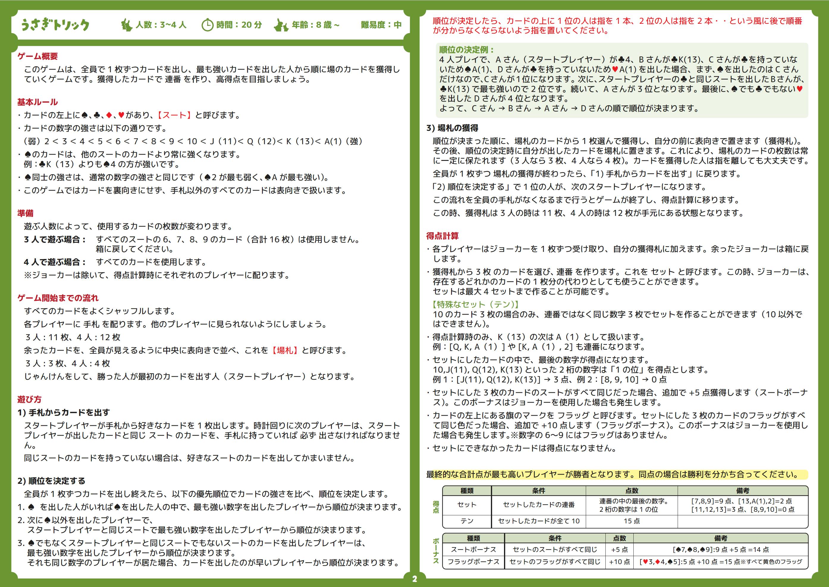 うさぎトランプ用に書き下ろしたゲームルールを先行で公開します!