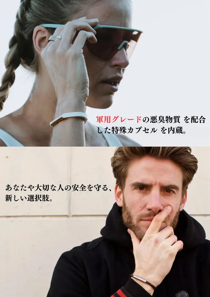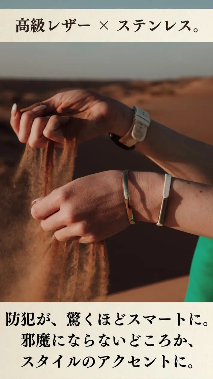 「あなたの手首に、目に見えないバリアを。」「スタイリッシュに、そして確かに、あなたを守る。」