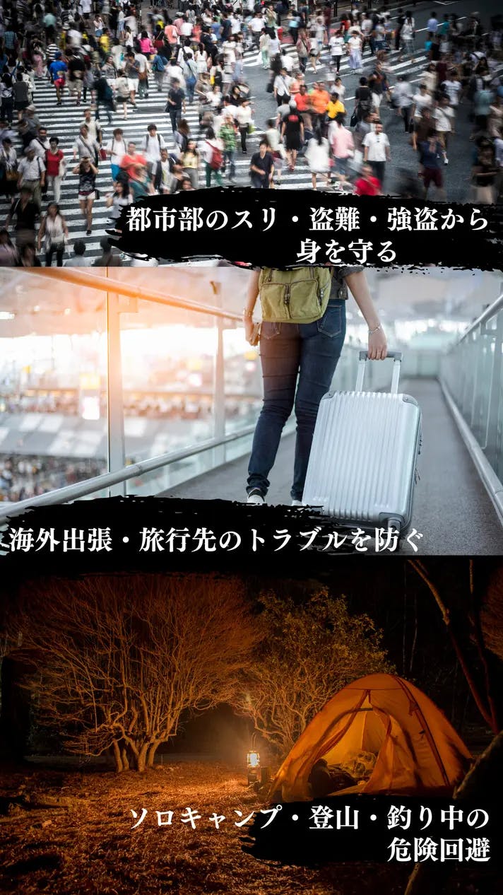 近年、日本でも犯罪が増加傾向にあります。報道される闇バイト犯罪、インバウンドでの外国人との接触など、身近なリスクが高まっています。「こんな時に、もしもの備えがあったら…?」だからこそ、さりげなく備えておくことが大切。