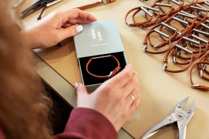Inviブレスレットは、オランダの職人がひとつひとつ丁寧に手作りしています。細部までこだわり、長く使える耐久性のあるデザインを追求。また、選定した素材を使用し、環境への影響を抑えながら、責任ある生産を行っています。