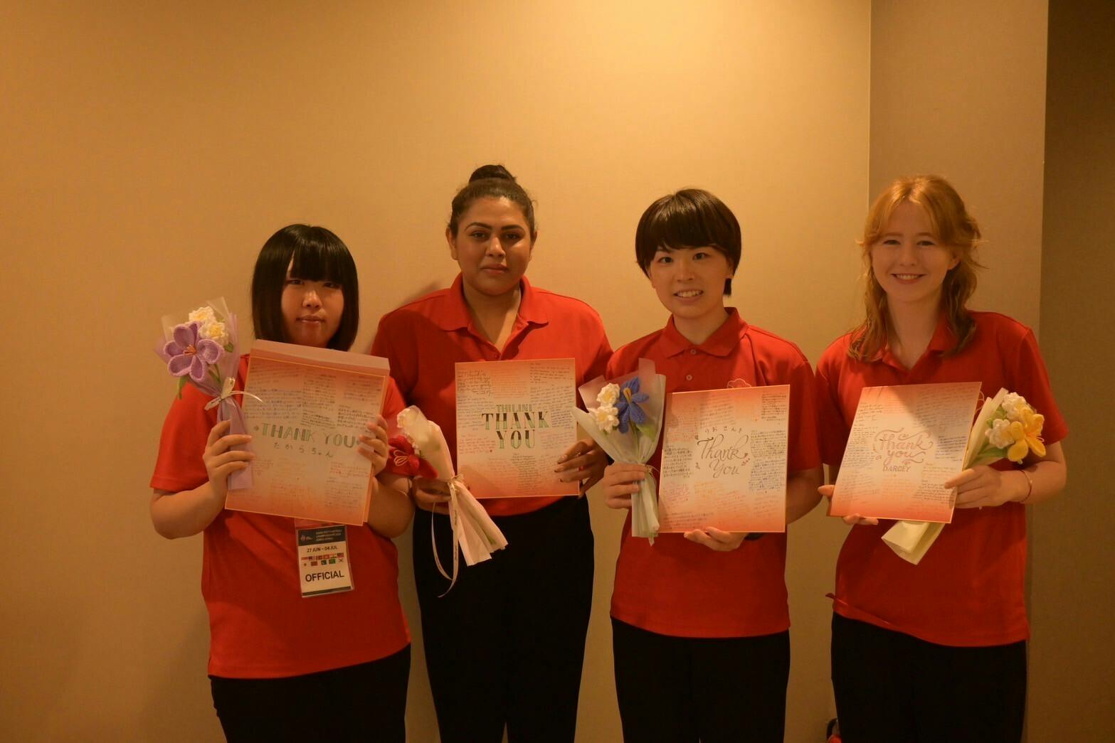 かわいい浴衣を着ているということで、日本の選手は大人気!引っ張りだこになりながら各国の選手とたくさんお話ししたり、写真をたくさん撮ることができました。