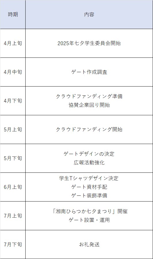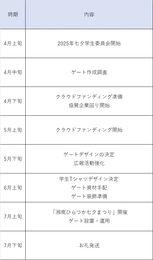 私たちは、2025年7月に開催される「第73回 湘南ひらつか七夕まつり」に向けて、段階的に準備を進めています。