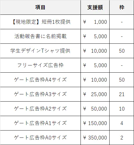 JCとして、本プロジェクトは「学生のやりたい」を実現させるために覚悟を決め実行することを決めました。しかし、私たちの力だけでは実現が難しいということもあり、皆さまのお力を借りたいと考えております。