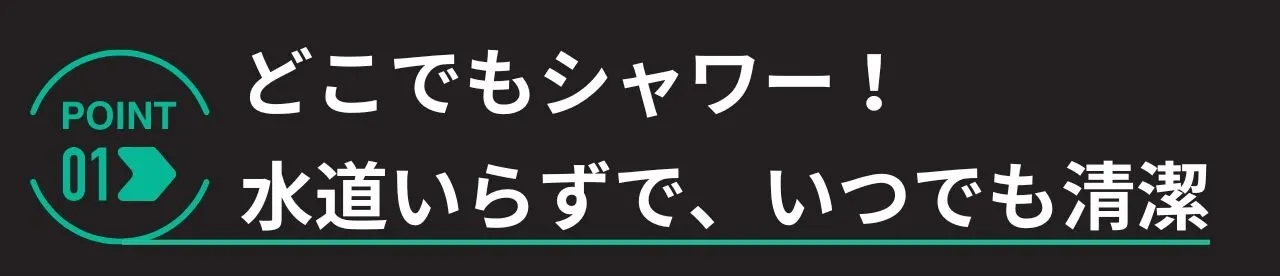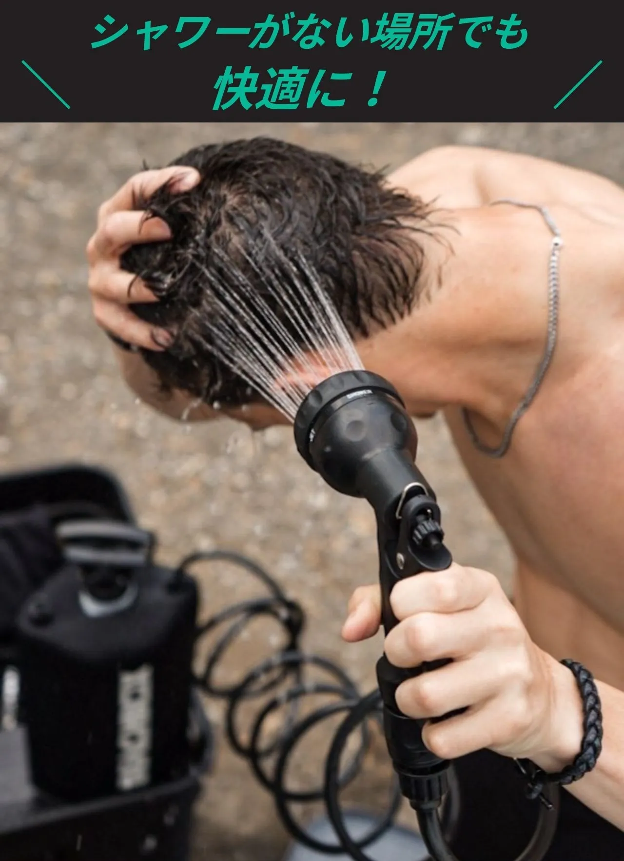 使用例:アウトドア後のシャワー、ペットの体洗い