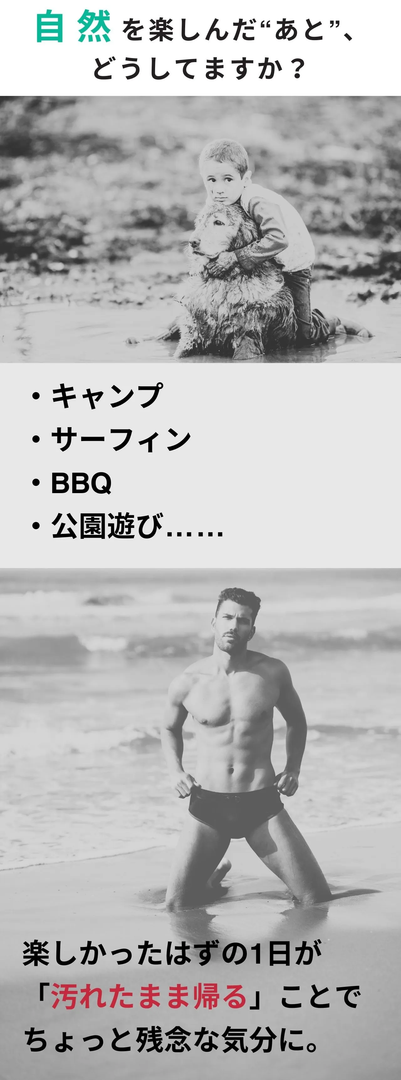 「帰る前にサッと流せる」だけで、アウトドア後のストレスが激減します。