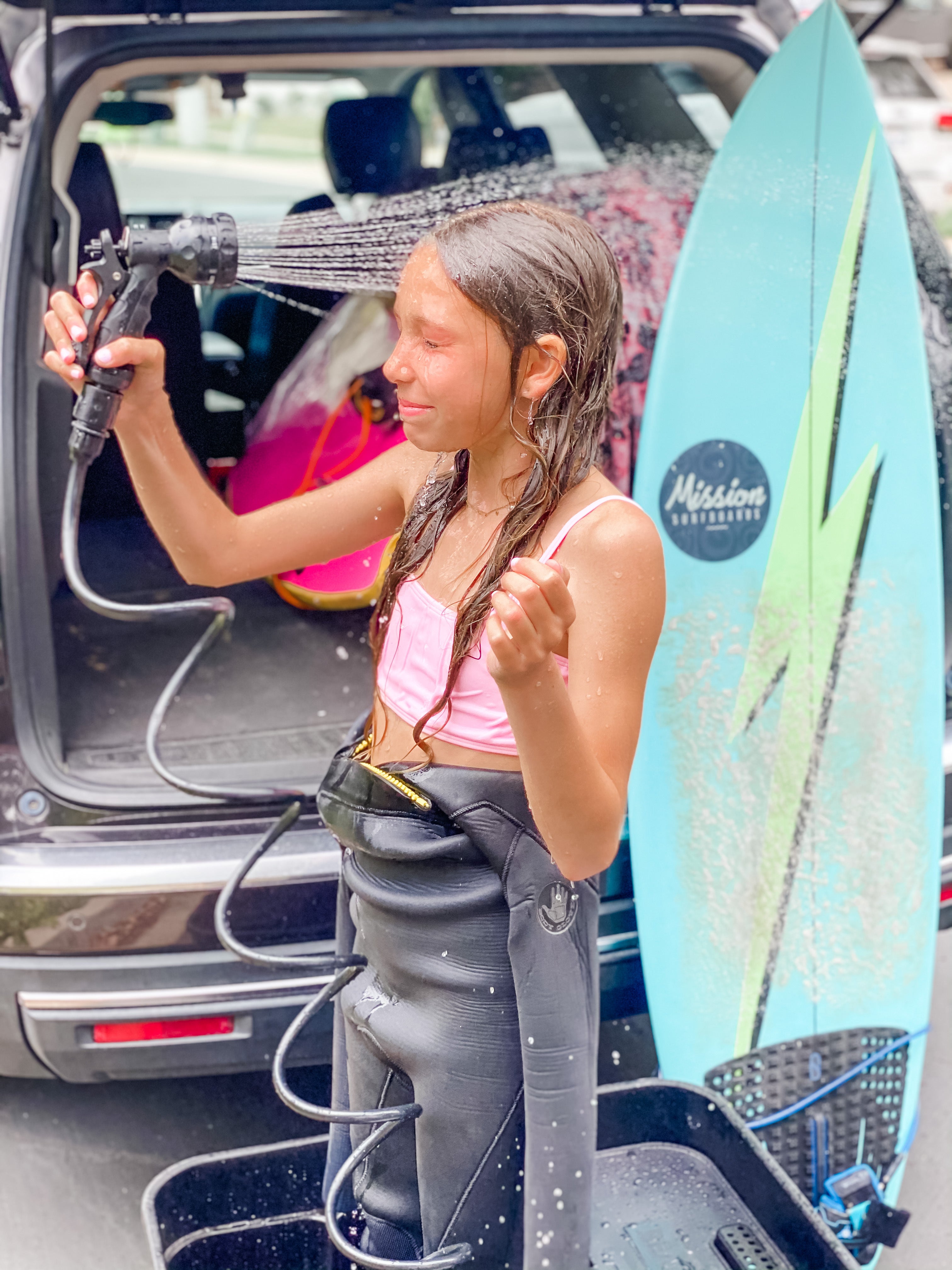 娘たちは試作段階からずっと付き合ってくれました。BEACHBOX Shower Tankで遊んだり、温かくて優しいシャワーを楽しんだり。
