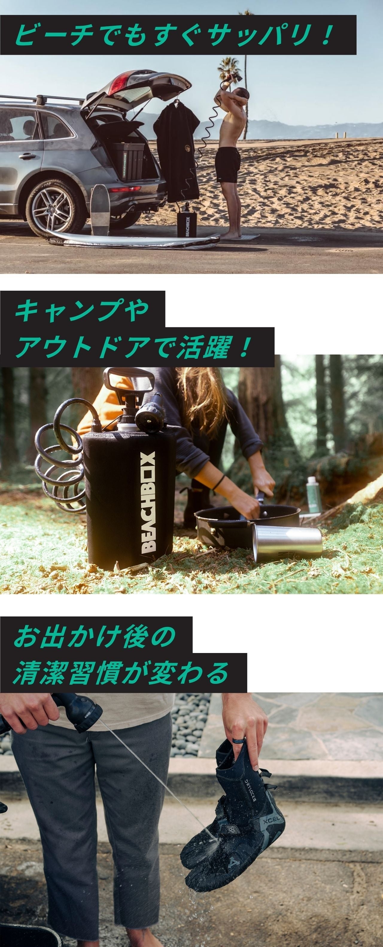 どこでも、いつでもシャワータイム!アウトドア、災害対策、日常の安心に。BEACHBOX Shower Tank で「清潔を持ち運ぶ」新しいスタイル、始めてみませんか?
