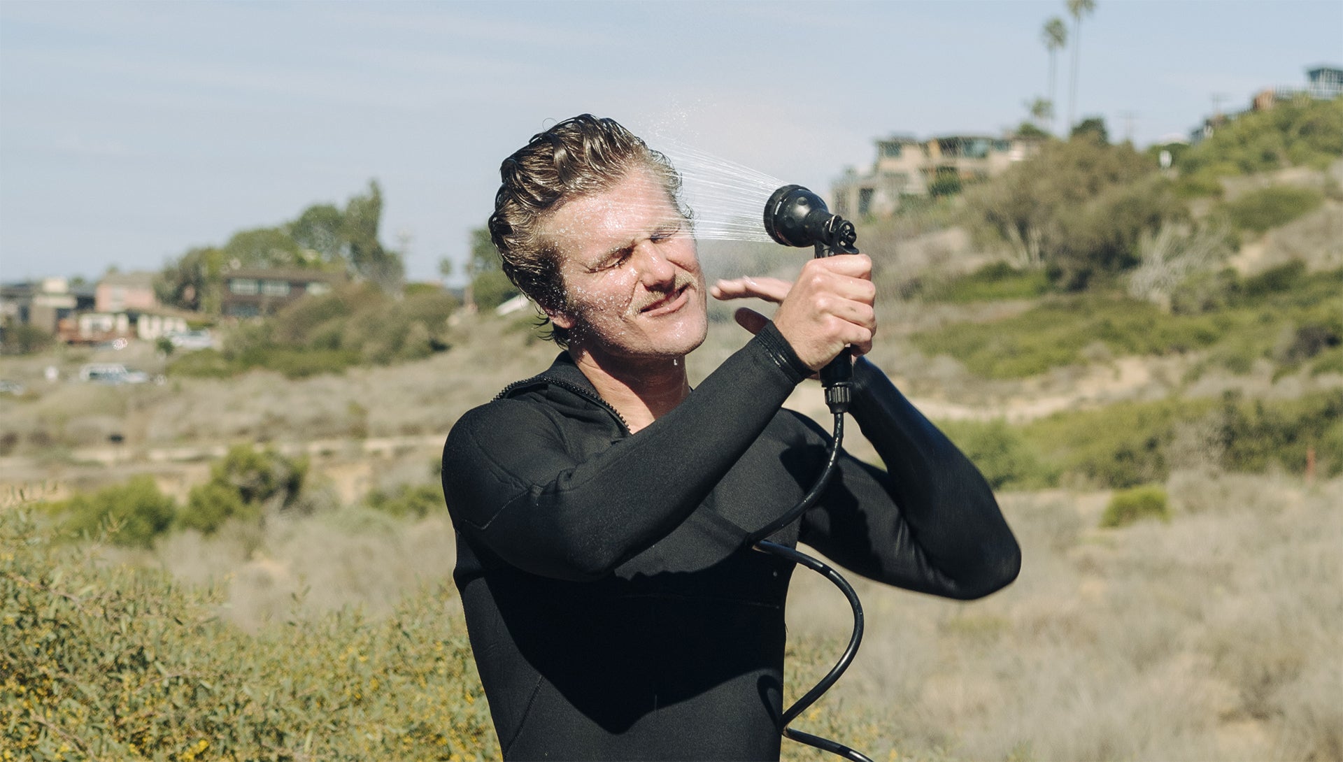 開発のきっかけは、サーフィン後に海水で濡れた体を洗いたくても、水道もシャワーも見つからず困った体験。
