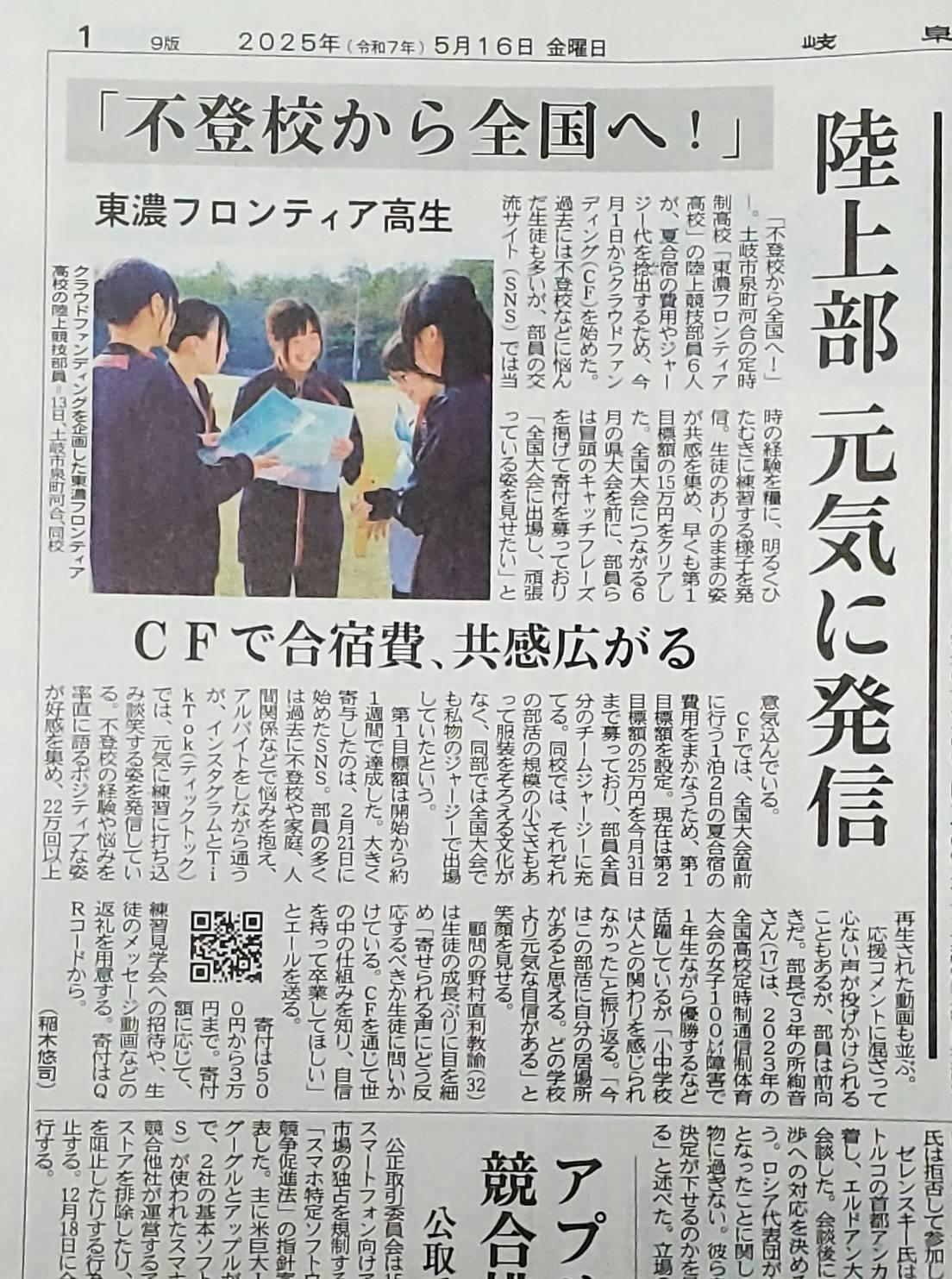 先日、岐阜新聞の記者さん(稲木さん)が私たちを取材してくださり、記事として掲載されました。