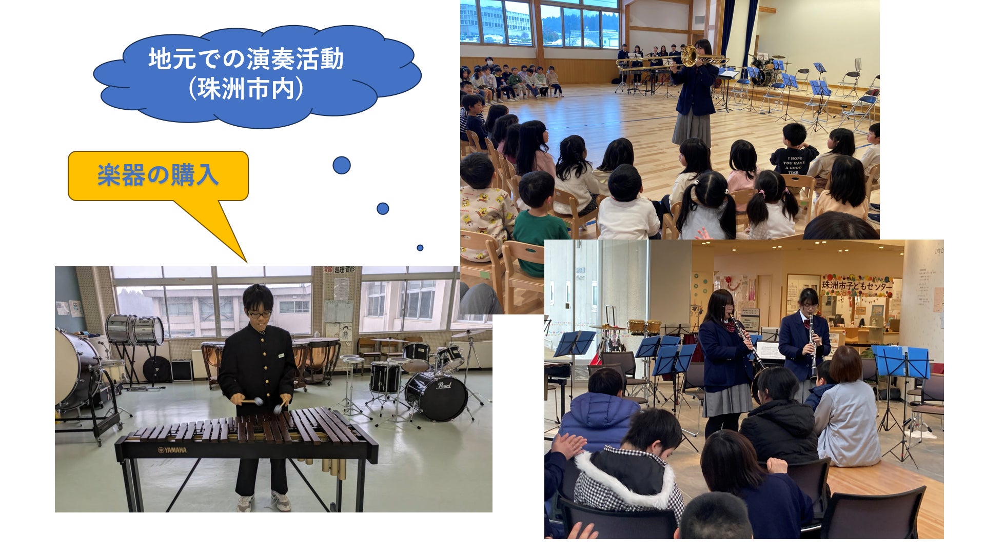 離れて暮らす仲間の分も一緒に、この地で暮らす子どもたちと地域の方々が音楽で元気や楽しさを共有してほしいと願っています。