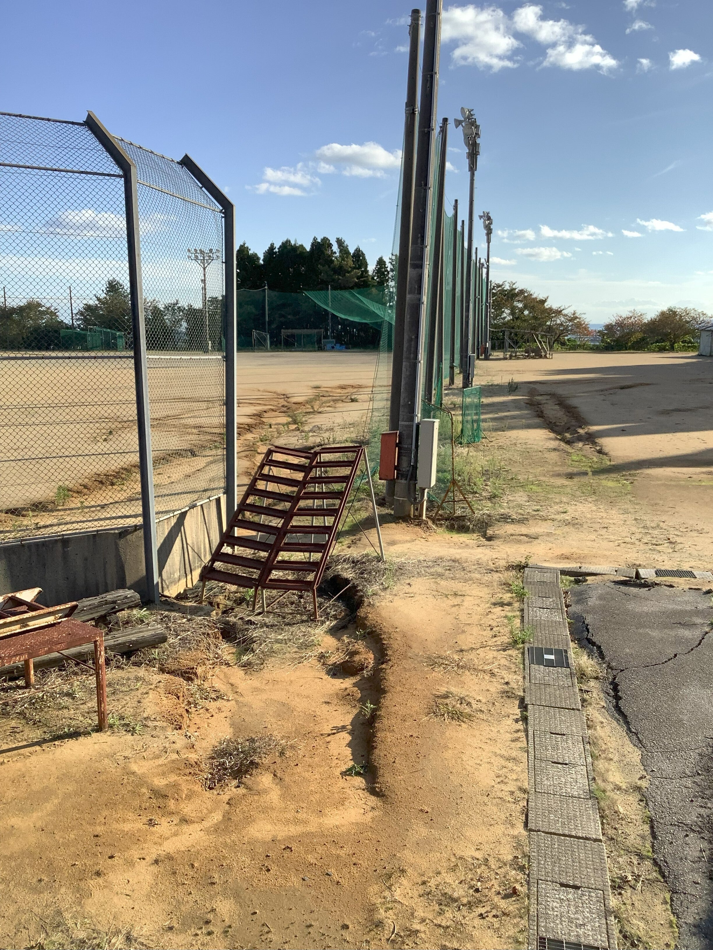 陥没しひび割れた校庭(珠洲市)
