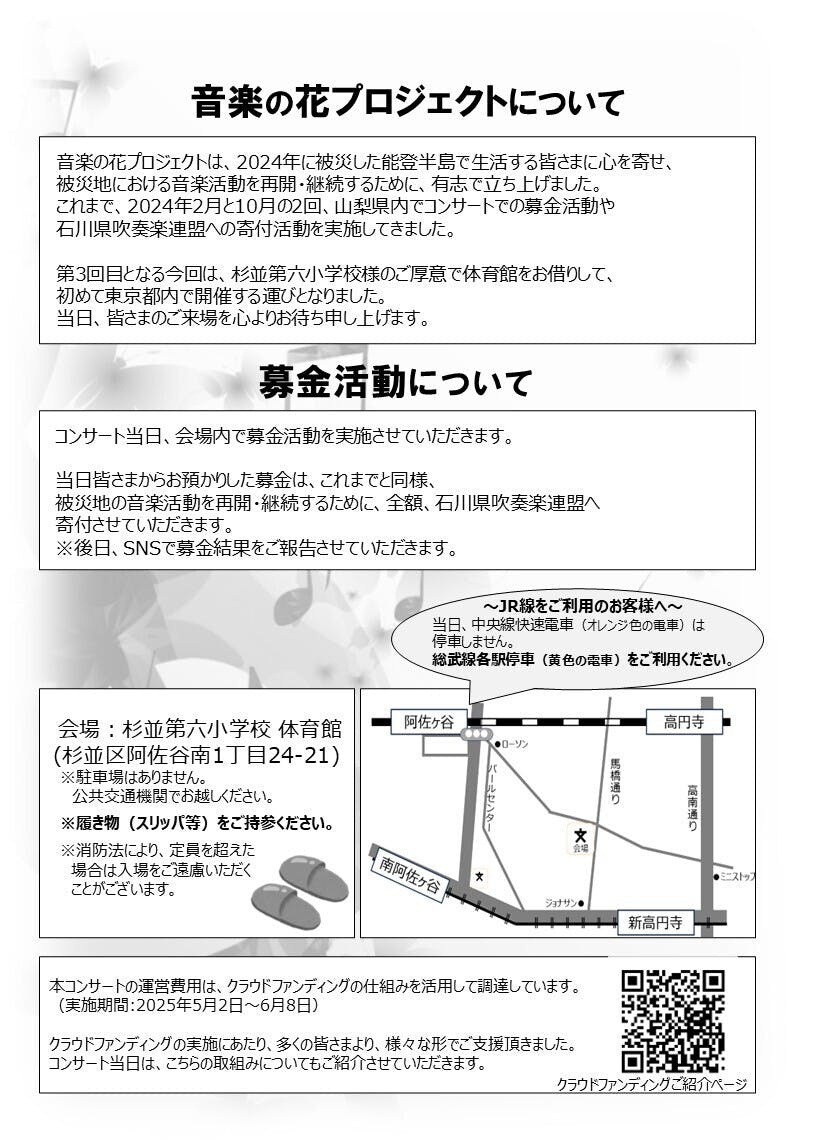 みなさまからのご支援を頂戴し、音楽の花プロジェクトは現在演奏会実施に向けて準備を確実に進めております。