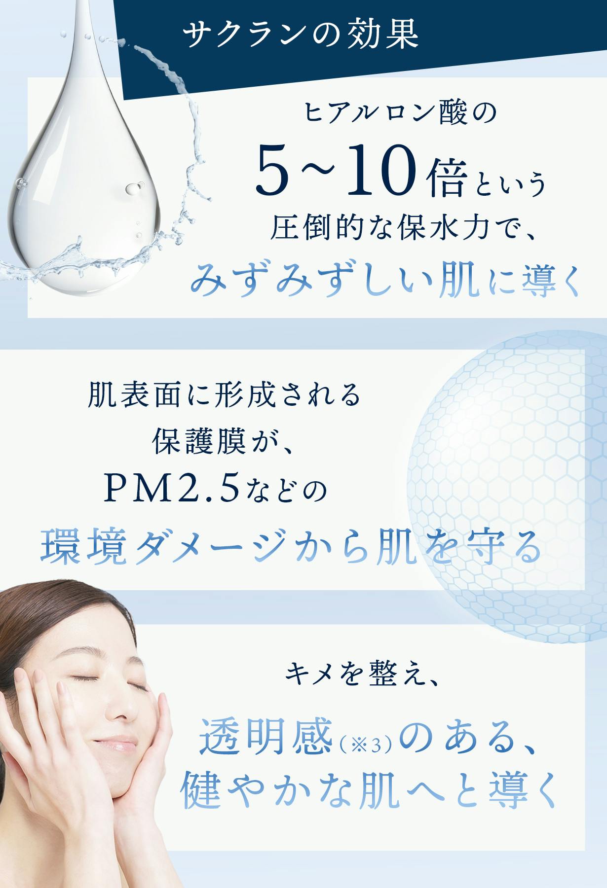電解水による浸透力(※5)と、サクランによる保水力。