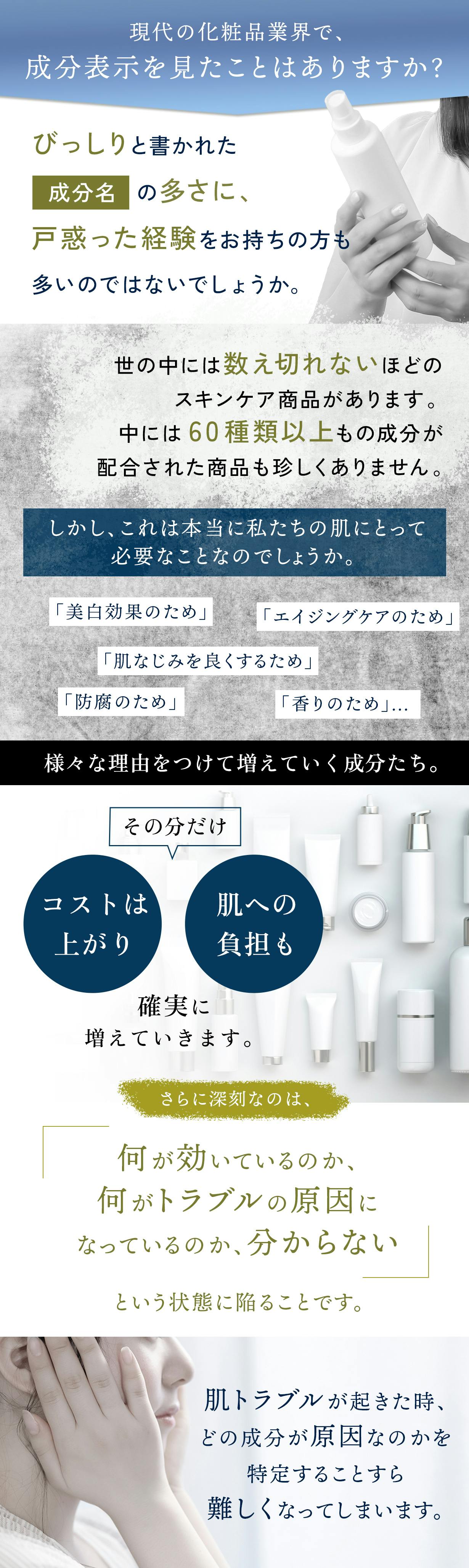そんな声に応えるように、新しい成分が次々と生まれ、商品は複雑化の一途をたどってきました。