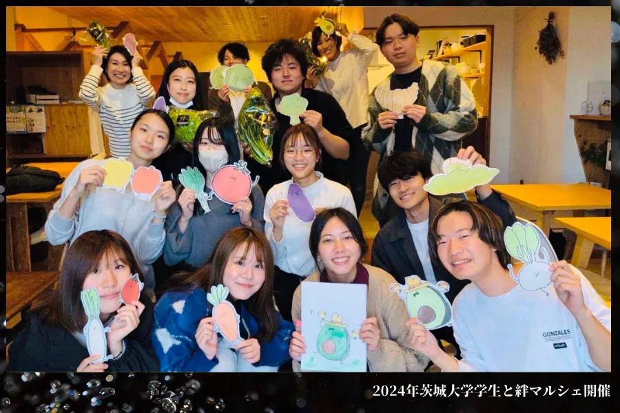 このプログラムでは学生の未来につながる「0から1を生み出す経験」を提供したいという想いから、茨城大学の学生たちと日立市の晴耕雨読というマイクロオフィスで「絆マルシェ」を開催しました。県北地域の14の企業・団体を巻き込んだ “まちおこしイベント”を学生主体で開催することができ、「0から1を生む出す経験」「ビジネスで利益を得る難しさ」を学生へ、【農業】という分野を通して提供できたと自負しています。