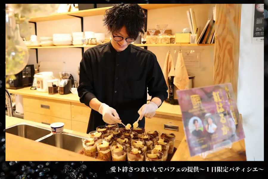 2024年には1日パティシエとなり、「紅はるかの和パフェ」を日立市で開催された地域交流イベントで提供しました。