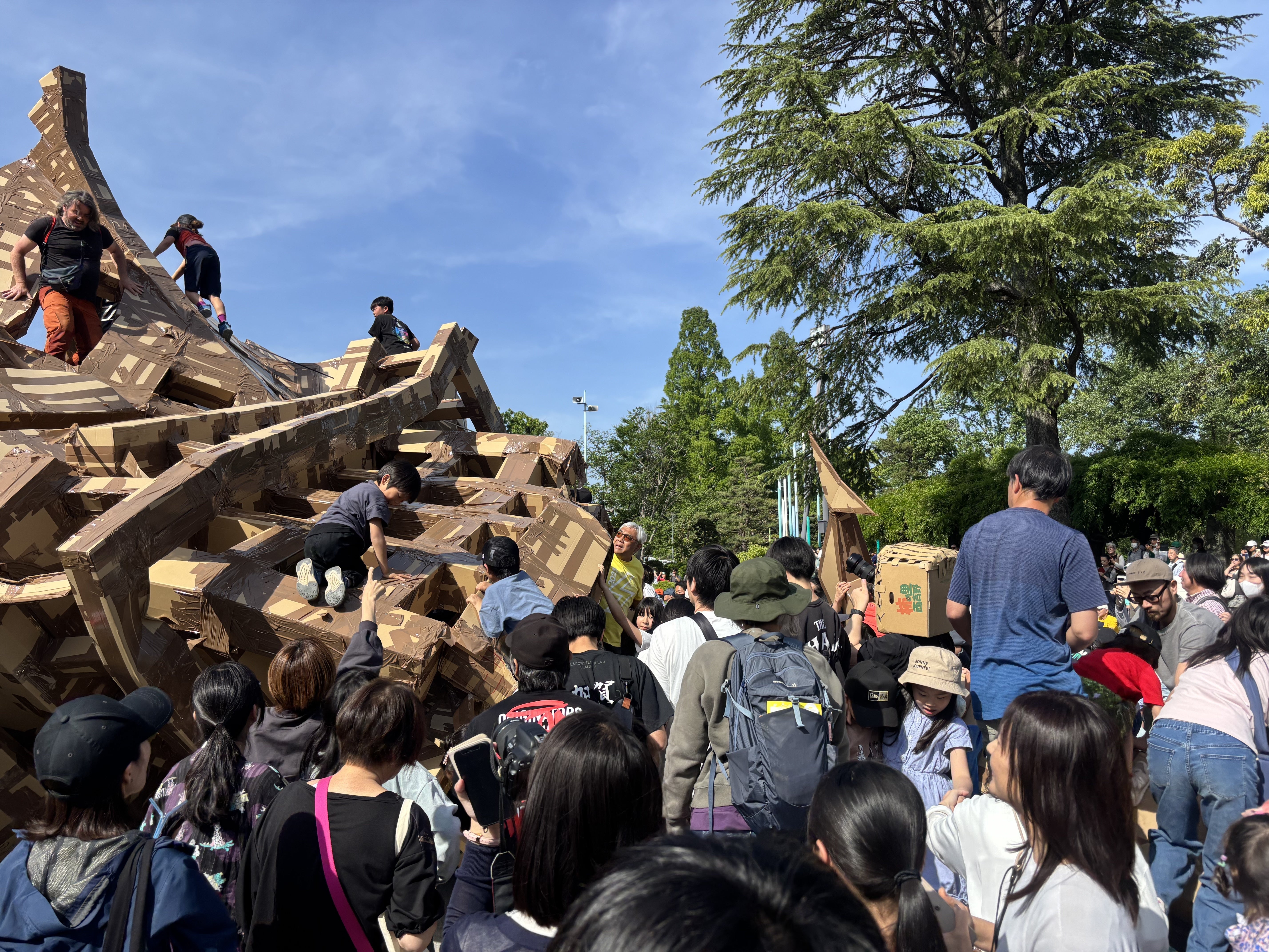 さらに富士見広場に展示されていたダンボール天守閣は、大勢の方の手や足によって盛大に解体が行われました!
