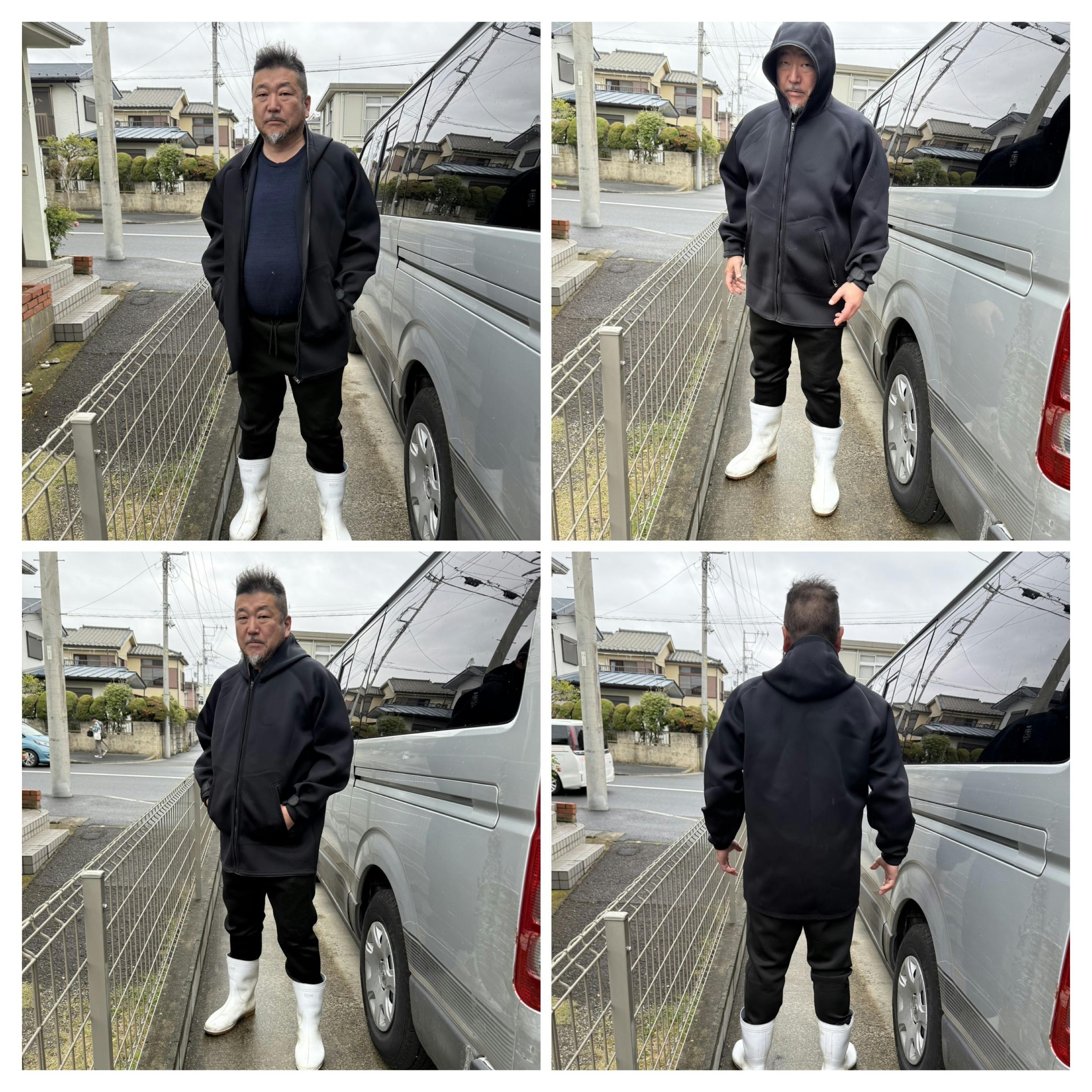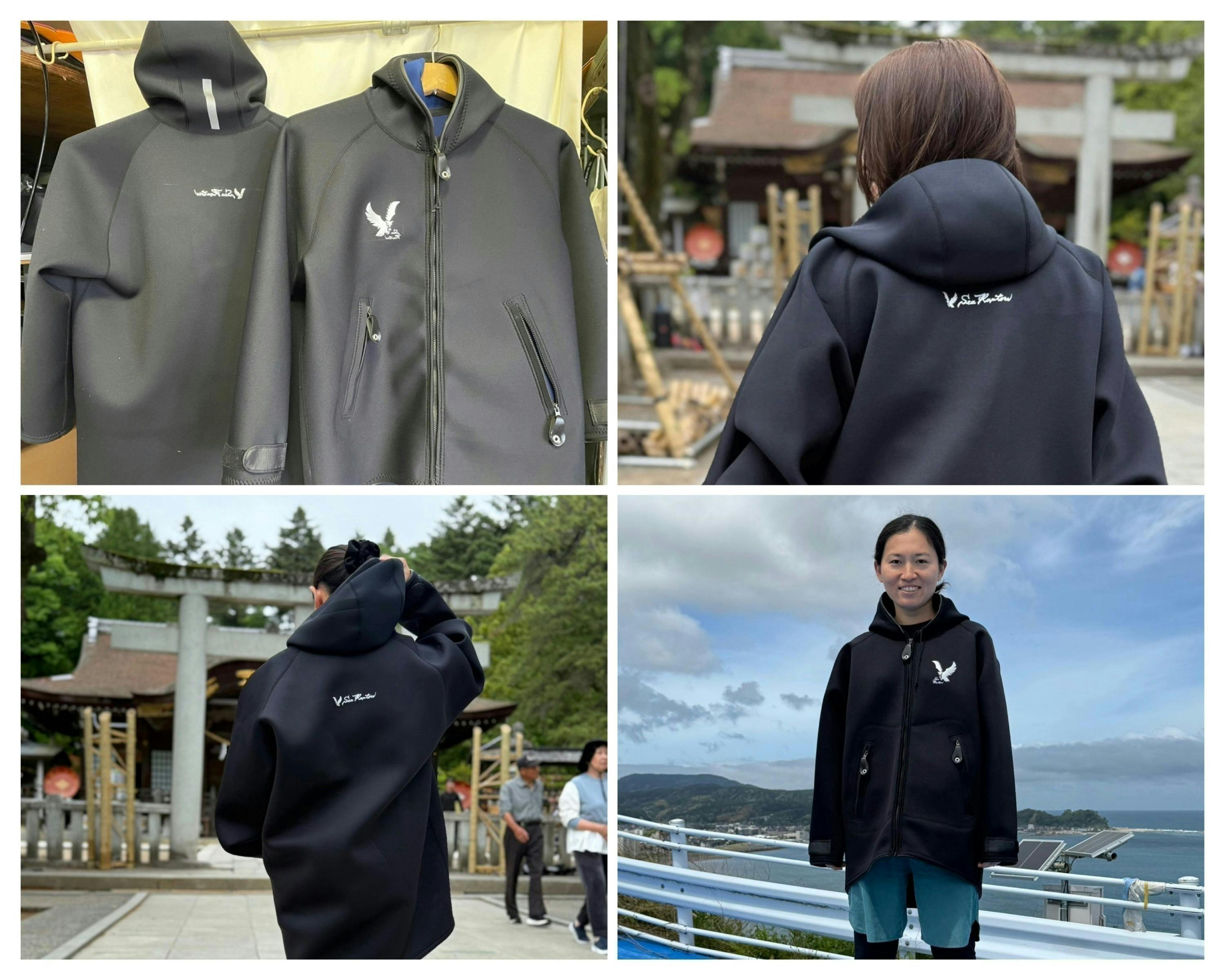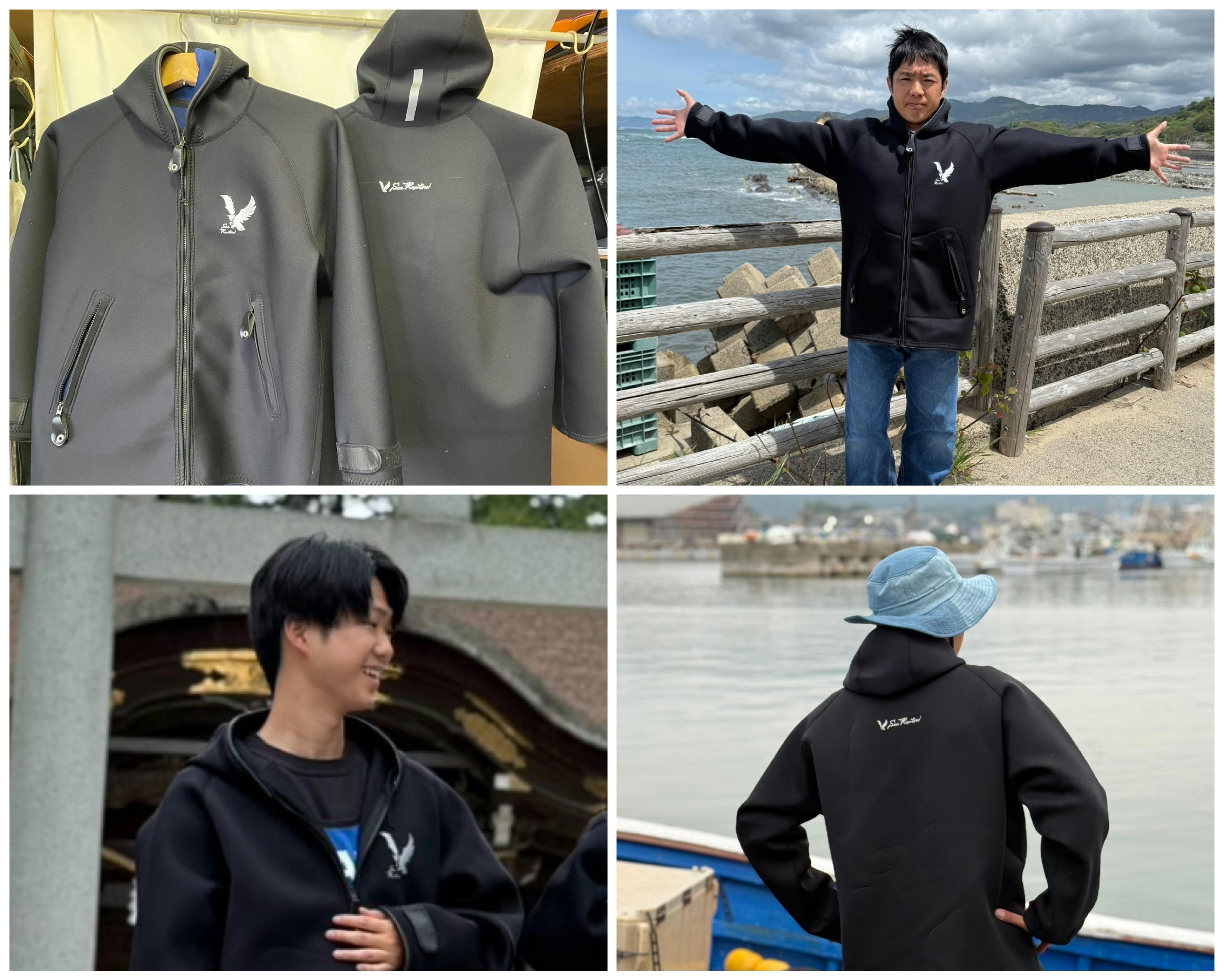 海女のウエットスーツ作成のノウハウを活かし、防風・防水・保温性に優れたボートコートを開発しました。作業現場だけでなく、釣り・アウトドア・災害時など幅広いシーンで活用できます。