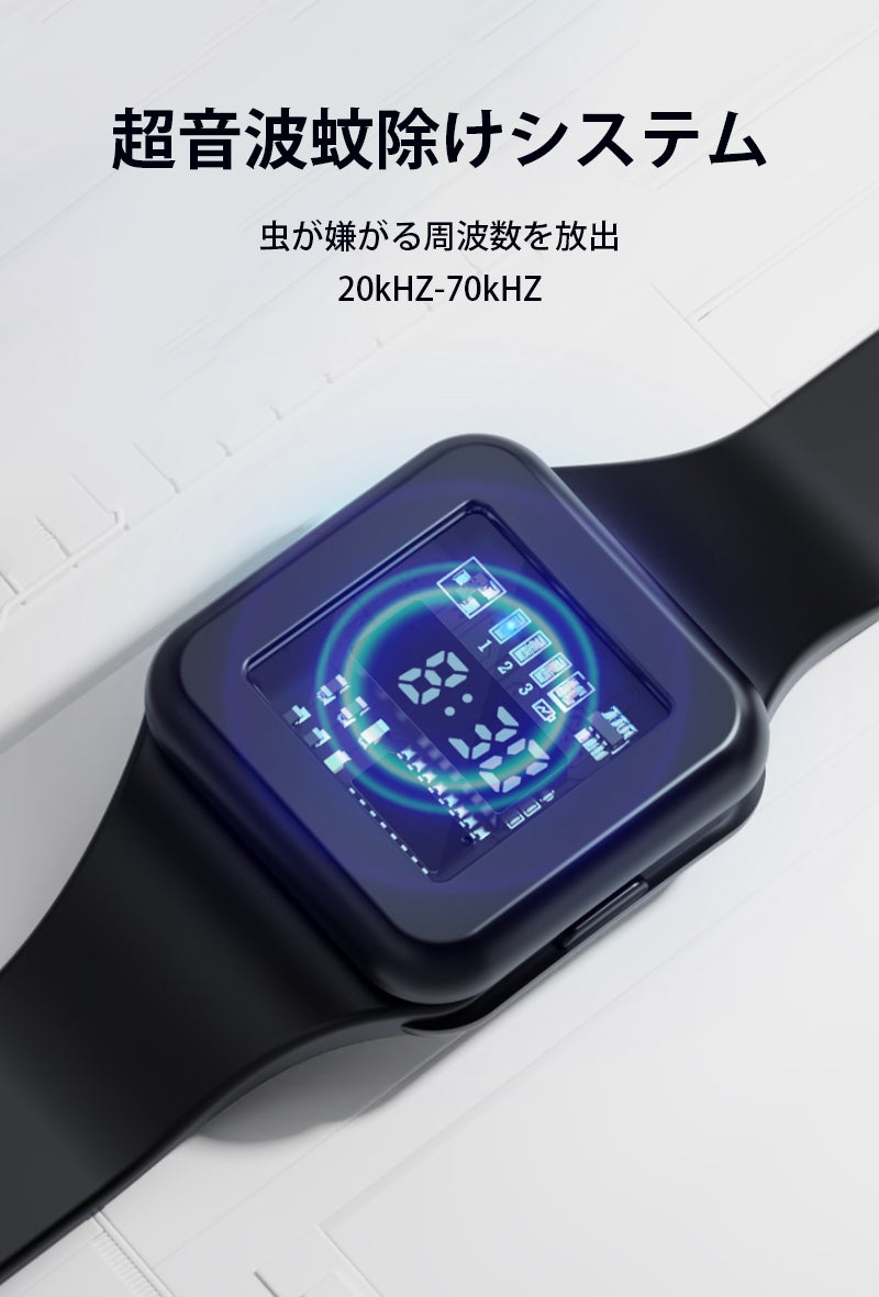 時刻デジタル表示機能を搭載しており、蚊除けと同時に腕時計として使用することができます。