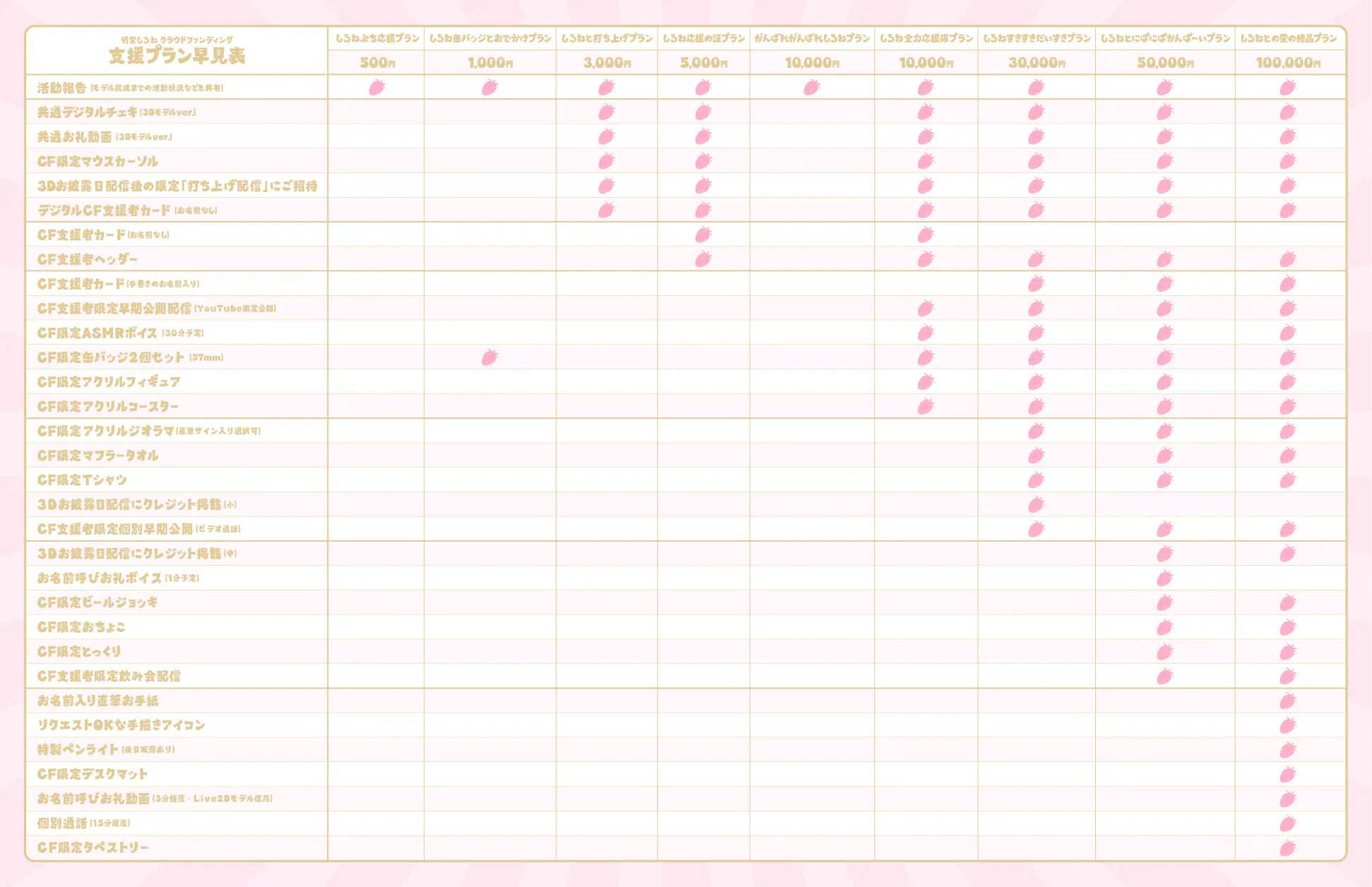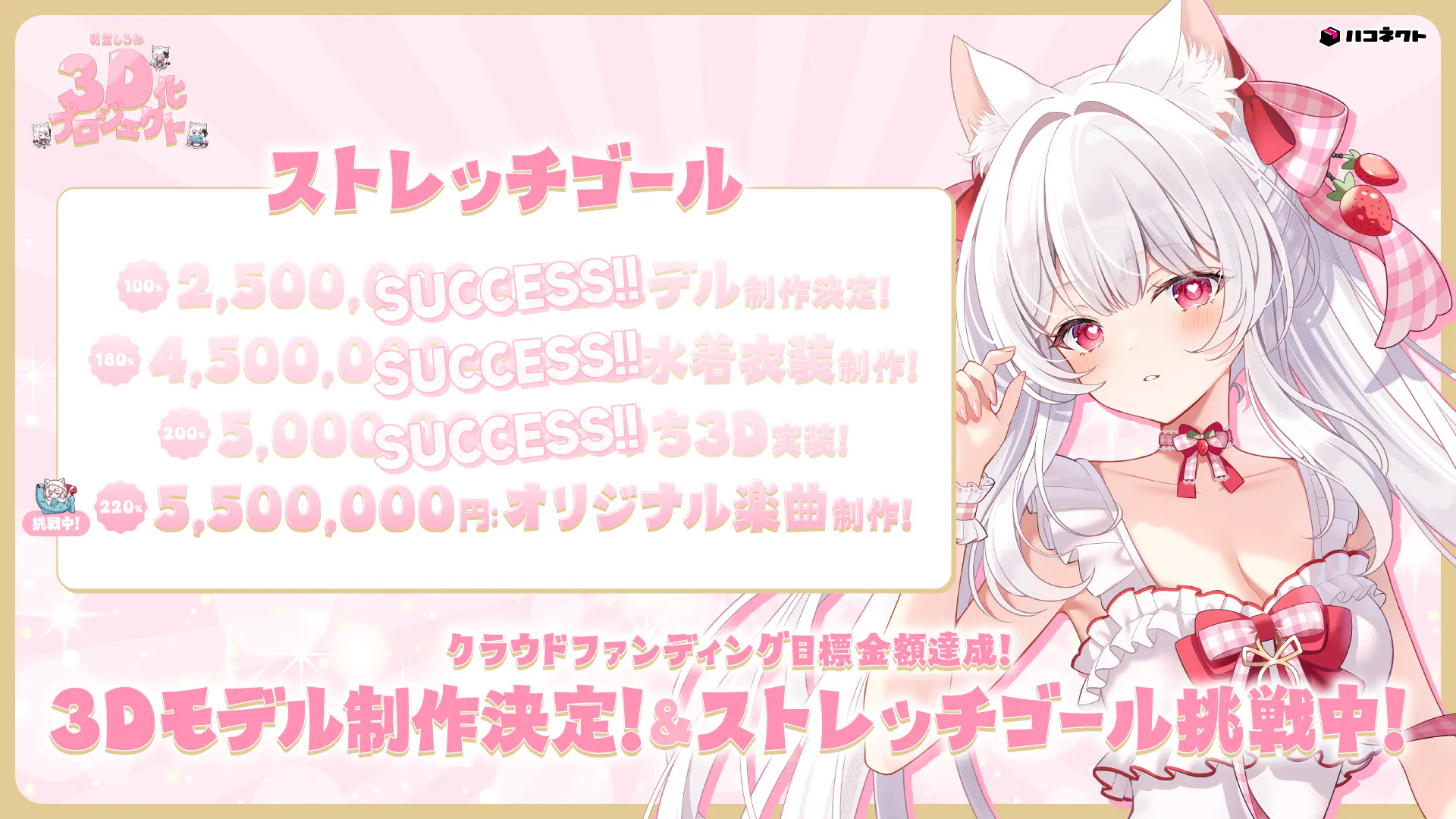 2026/03/20 19:00こちらの活動報告は支援者限定の公開です。リターン品「3Dお披露目配信後の打ち上げ配信」の日時をお知らせいたします