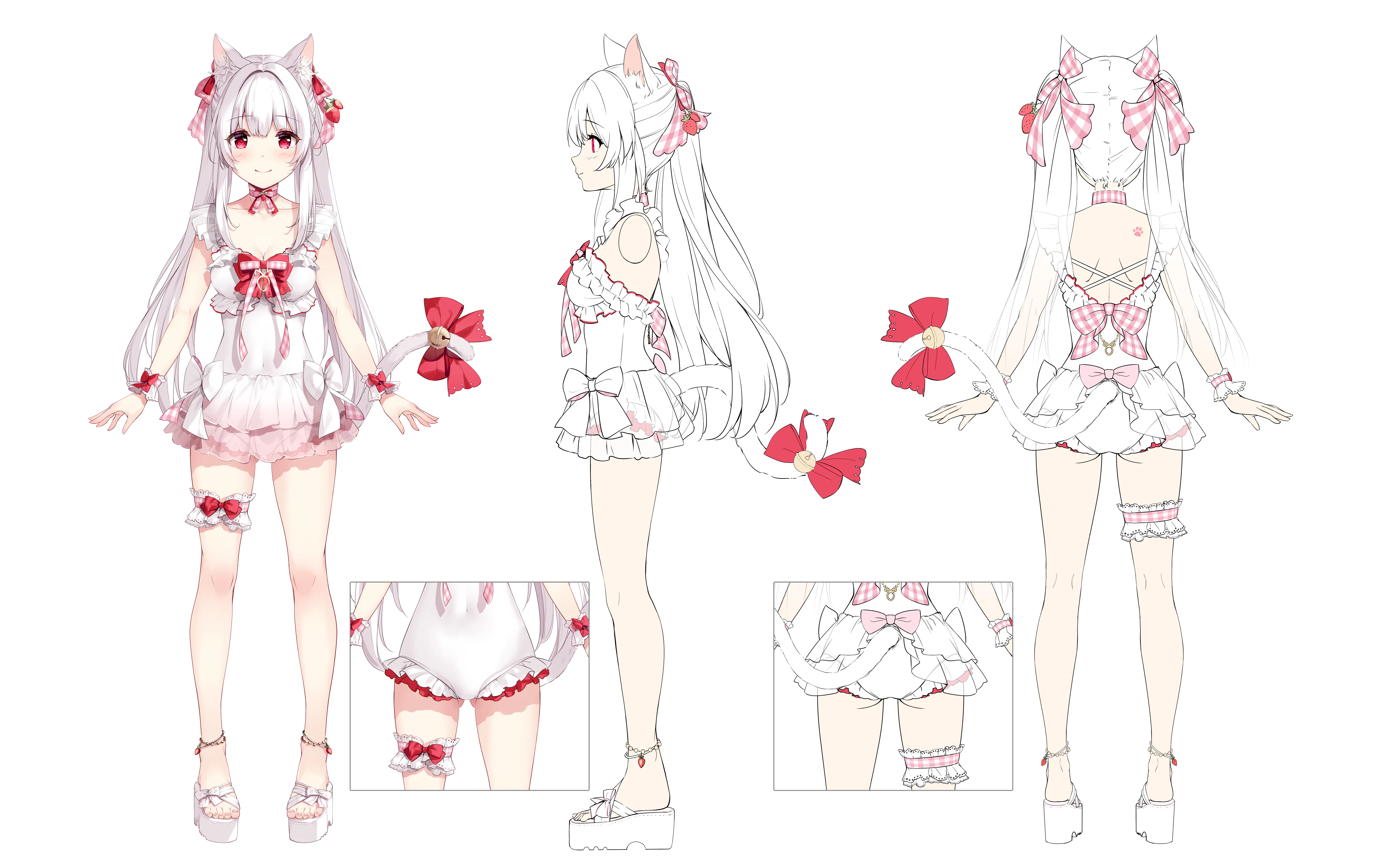 そして、一つ目のストレッチゴールで達成した水着衣装の三面図も完成しました。