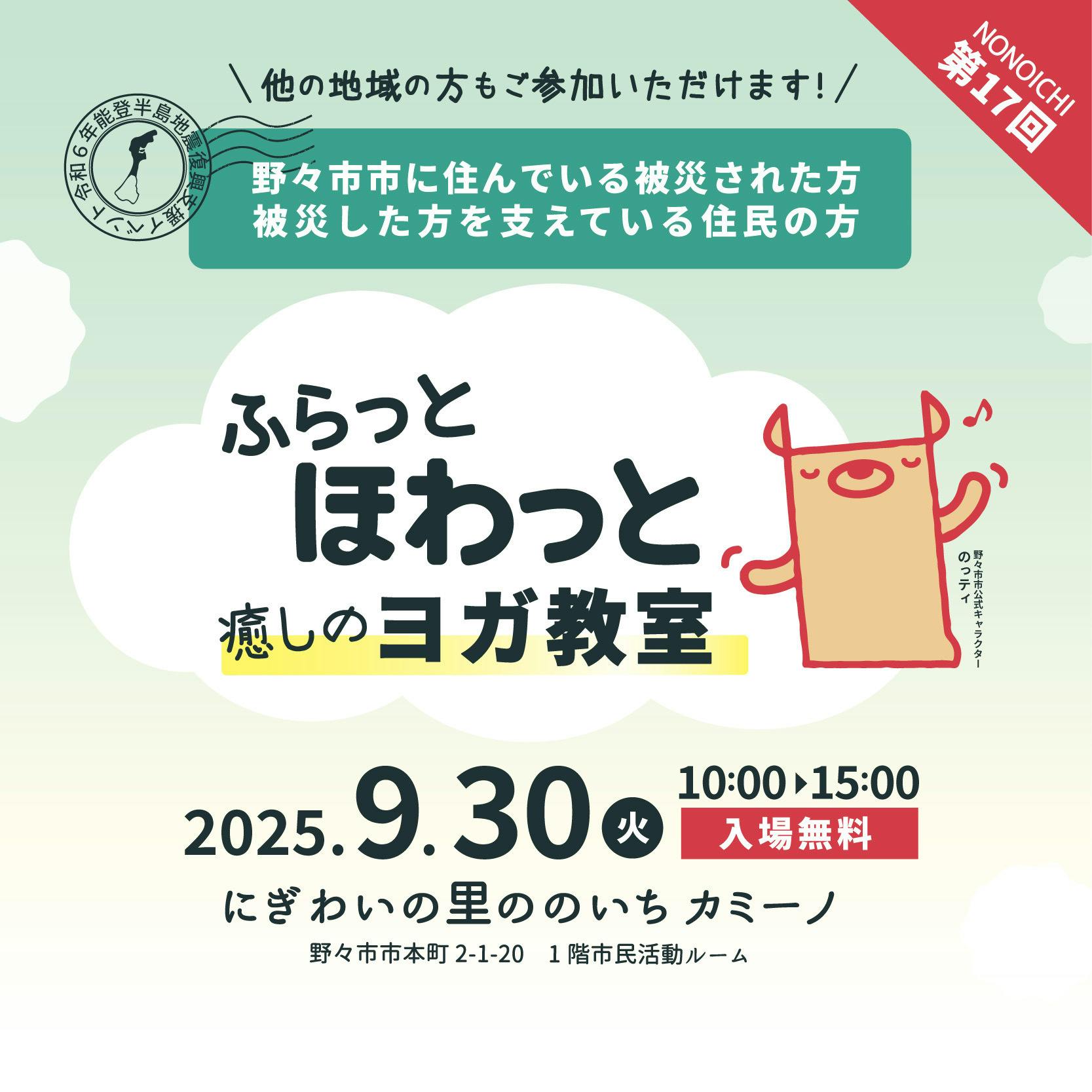 今回のメインイベントは《癒しのヨガ教室》。 講師は、昨年も大好評だった yogaEMBRACE の野村さんです。
