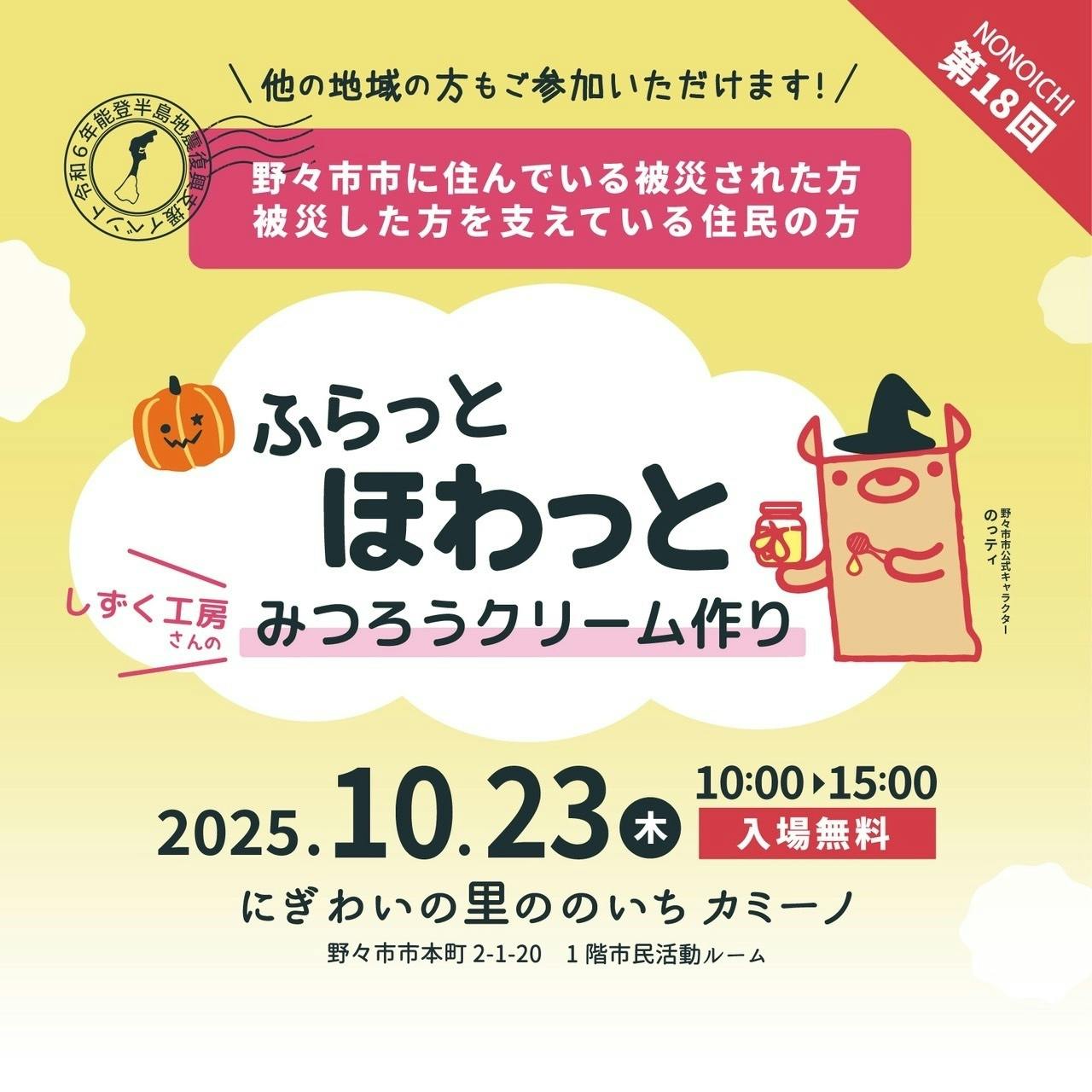 2025/10/20 14:33こんにちはにじいろエイドです!久しぶりの投稿になってしまいました( ;∀;)今週23日(木)に18回目のイベントを行います!メインイベントは野々市市ではちみつ屋をやっているしずく工房さんによる≪はちみつのミツロウを使ったクリーム作り≫です。こちらのクリーム。本当にすごいのです!!私は食器洗い後の手によく使用しているのですが、しっかりと潤ってくれてとても重宝しています。今回は、はちみつのお話と、3種類のはちみつの試食もご用意しています。 香りや味の違いを楽しみながら、はちみつの魅力に触れてみませんか?さらに、セラピストチームによるハンドケアも体験できます。癒しのひとときをぜひお楽しみください。そして、月替わりのお菓子はふがく堂さんの「最中勧進帳」。 くるみが入った香ばしい最中で、思わず「うまっ」とつぶやいてしまう美味しさです(*^^*)今回も、たくさんの方のご来場を心よりお待ちしております♪ もっと見る