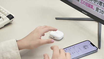 イヤホンを片方相手に渡すだけで、そこはもう言葉の壁のない世界。録音・文字起こし・ AI要約までこなす、ビジネスと旅行の最強パートナーです。