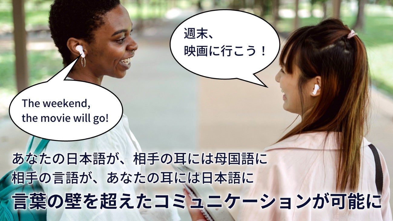 イヤホンを片方相手に渡すだけで、そこはもう言葉の壁のない世界。録音・文字起こし・ AI要約までこなす、ビジネスと旅行の最強パートナーです。