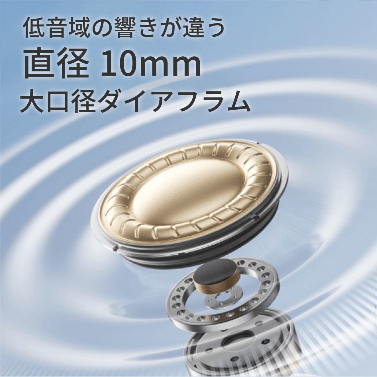 一般的な翻訳イヤホンは翻訳機能に特化するあまり、音質が犠牲になりがちです。Fineblue C10Aeはスピーカーの要である振動板(ダイアフラム)に大口径10mmを採用。