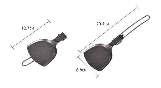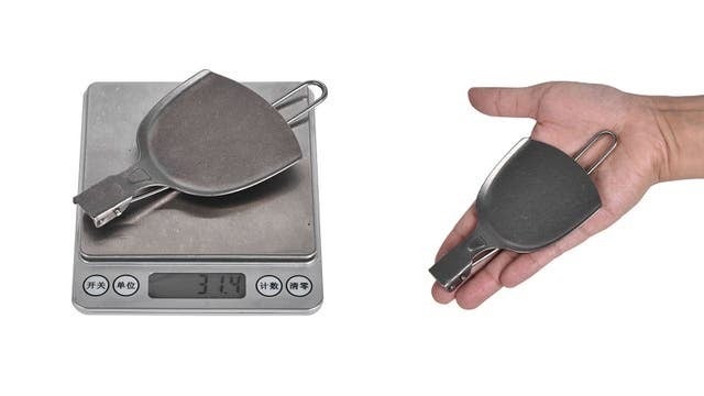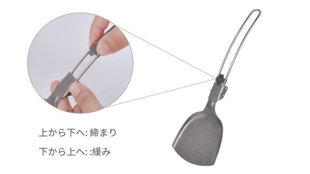 折りたたむと手のひらほどの大きさになる純チタン製のフライ返し、重さはわずか31.4gです。