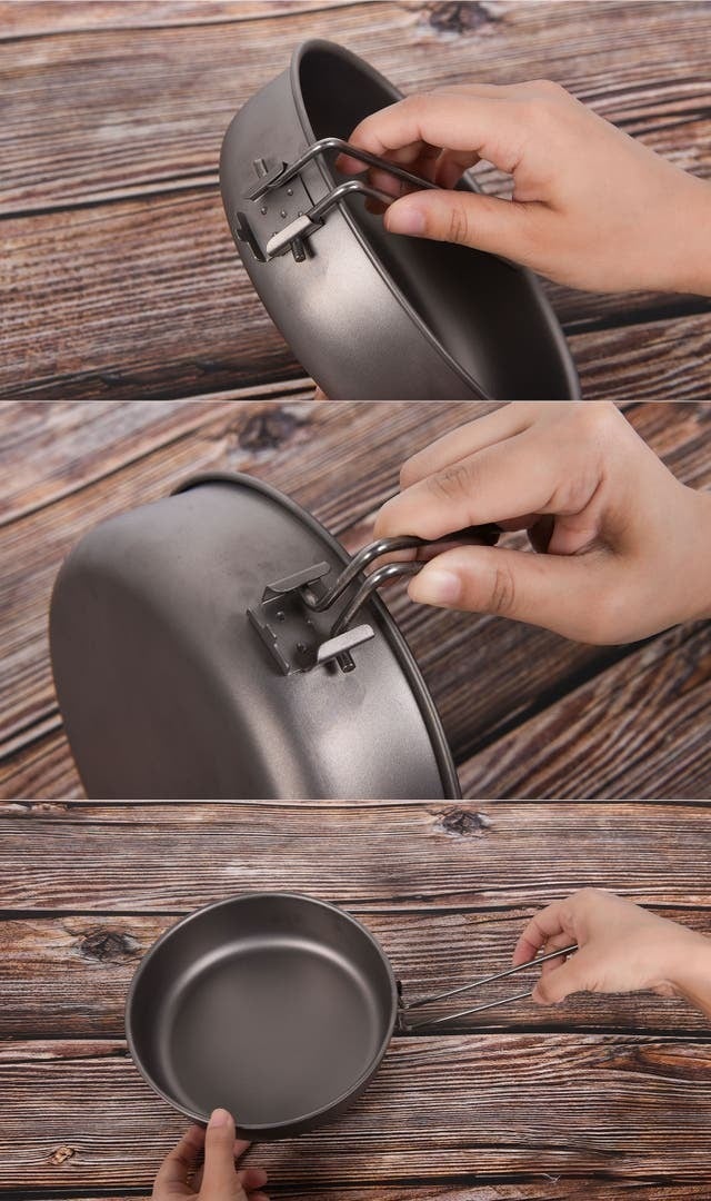 上に折りたたむことで鍋の蓋をしっかりと固定し、移動中に蓋が落ちることを防ぎます。