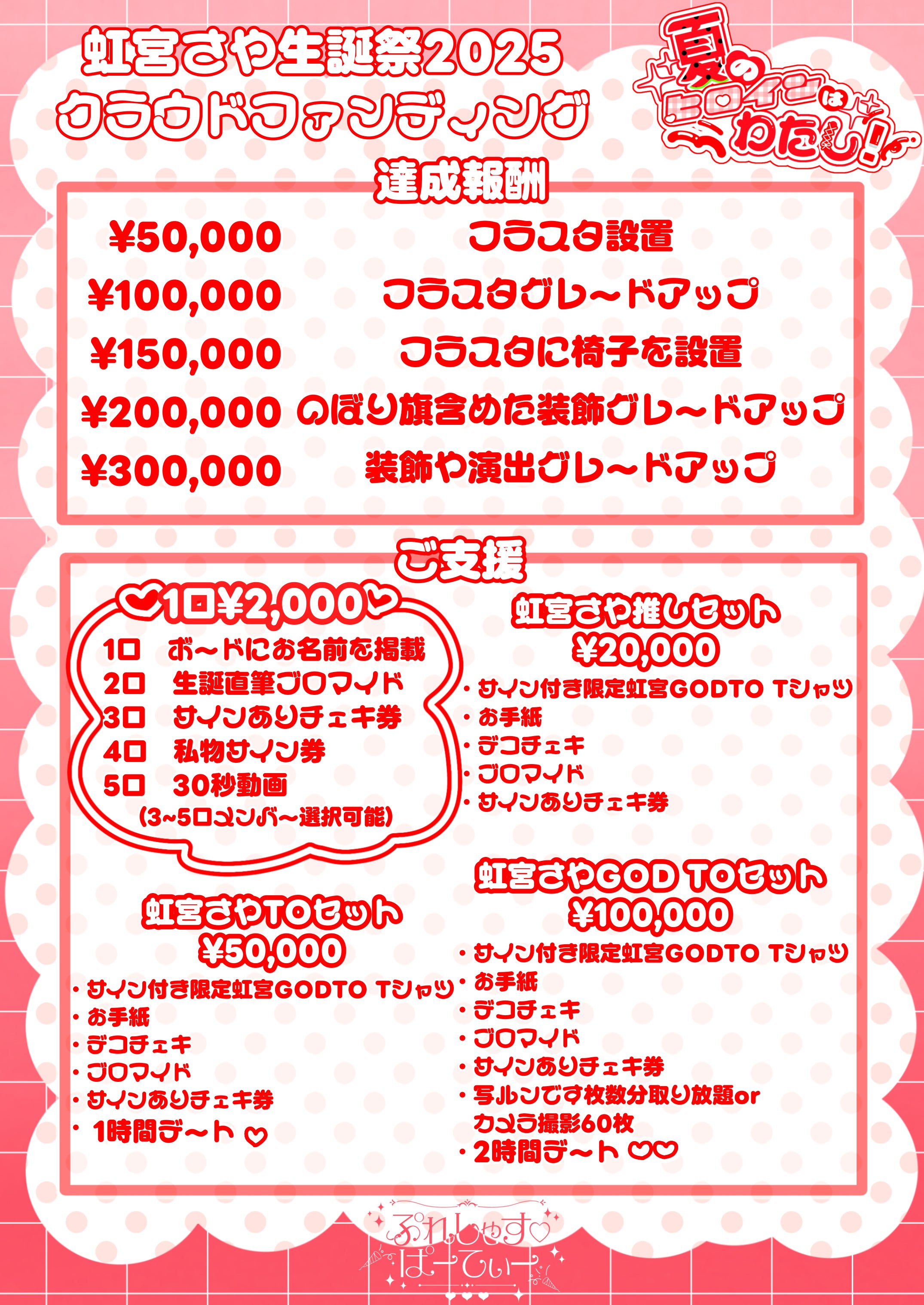 2025年7月にイベント開催予定の「ぷれしゃす♡ぱーてぃー【虹宮さや】生誕祭」を盛大に行うために、皆様のご支援を心よりお願い申し上げます!