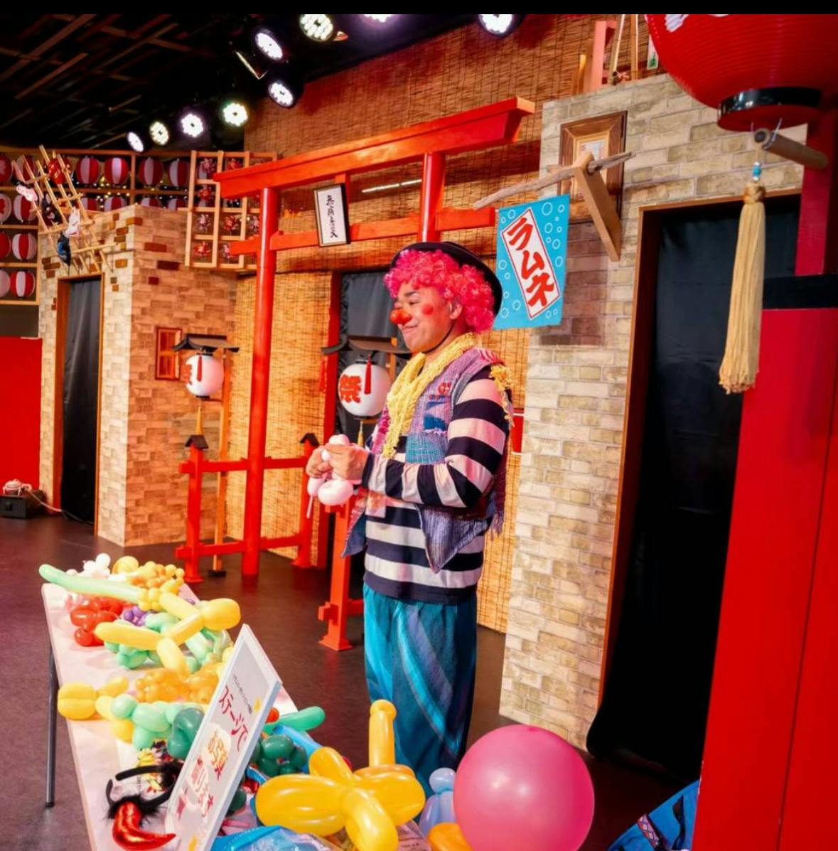ステージでピエロさんから風船もらってくださいね