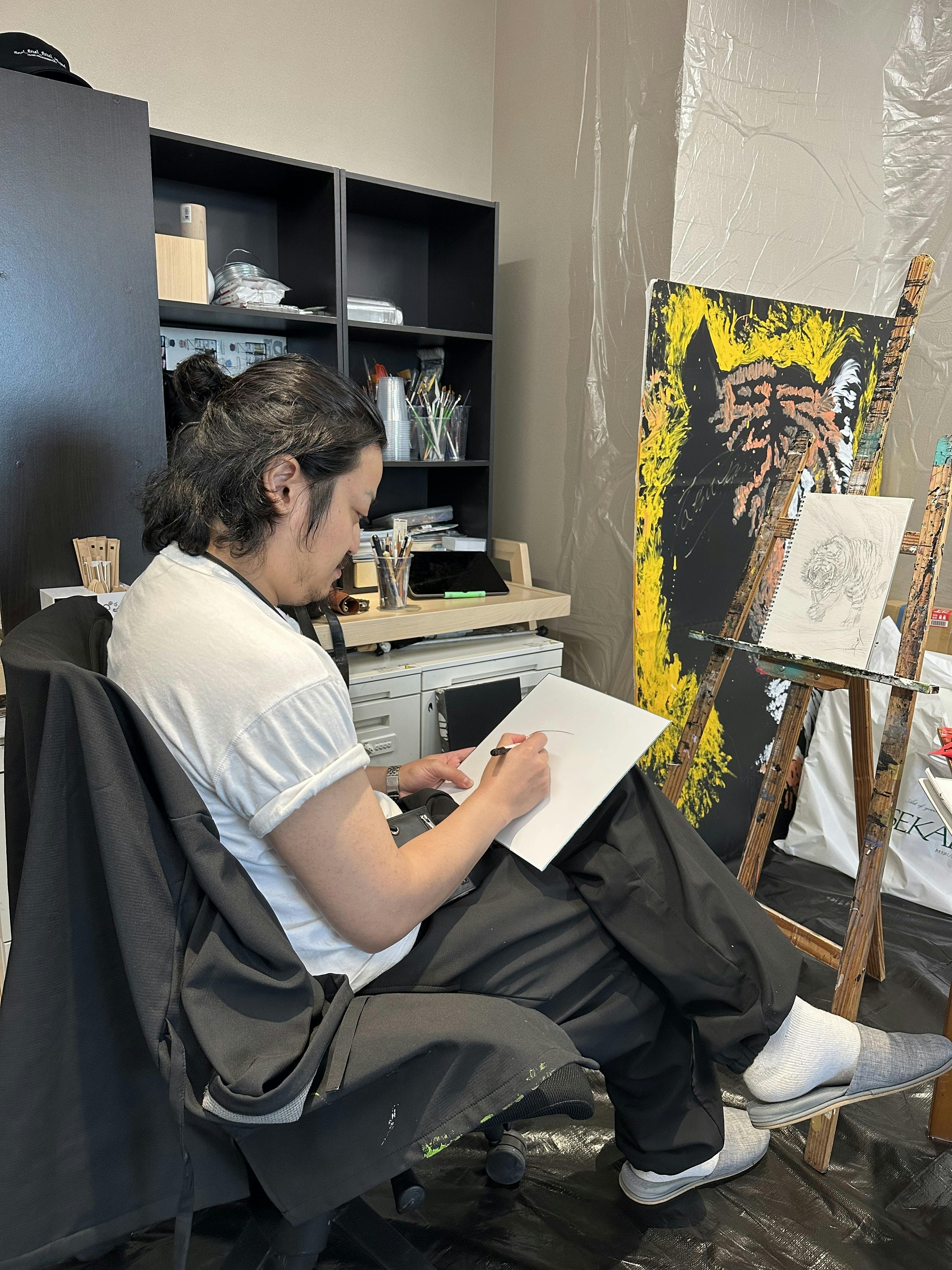 ラオウさんは虎や龍など迫力いっぱいの躍動感ある絵を描いてます
