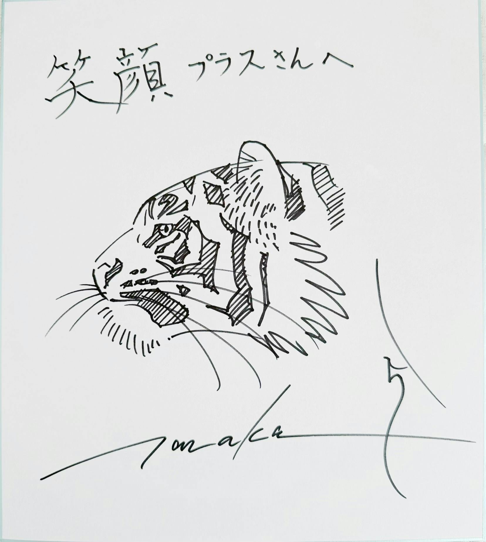 応援サインいただきました!画家で似顔絵世界一にもなった田中ラオウ様より虎のイラストサインいただきました。https://www.instagram.com/raoutanaka/ラオウさんは虎や龍など迫力いっぱいの躍動感ある絵を描いてます来月には都内で個展が開催されますのでインスタなど是非チェックしてみてください。今まで皆様から頂いた応援サインやイラストは笑顔イベント2025でもステージに展示しますので是非子供達も楽しんで見てもらえたら嬉しいです。ラオウさんありがとうございました!クラウドファンディング現在1,115,000円(達成率92%) やっと150人の子供達と職員様のご招待がみえてきました!200名の最終目標まであと505,000円あと6日!最後まで一人でも多くの子供達をご招待できるよう頑張ります。応援よろしくお願い致します。笑顔プラス