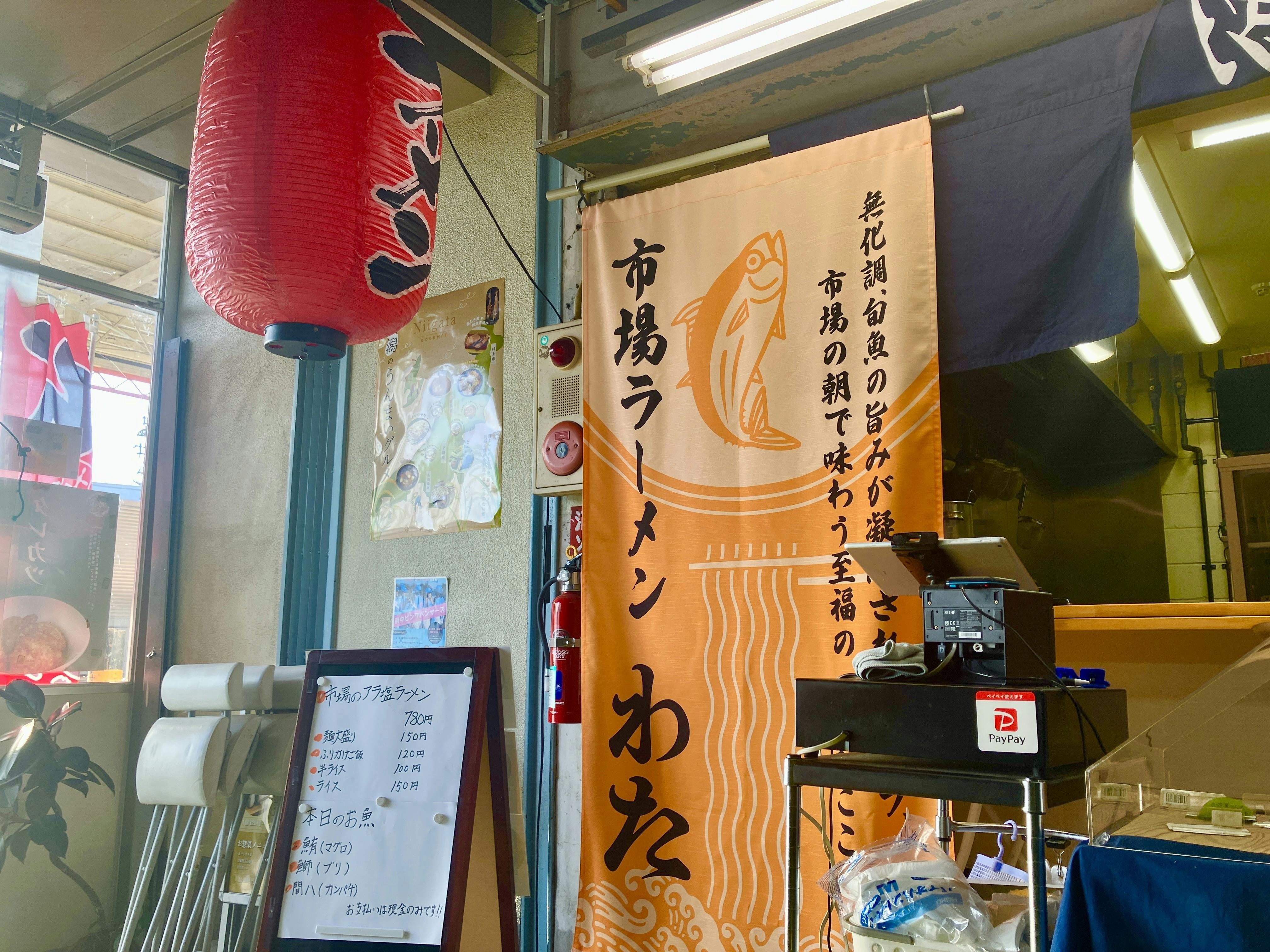 ※「市場ラーメンわた」の営業時間は毎週金土日、朝7時〜9時の営業となります。それ以外の時間は「潟食(かたしょく)」として通常営業しております。