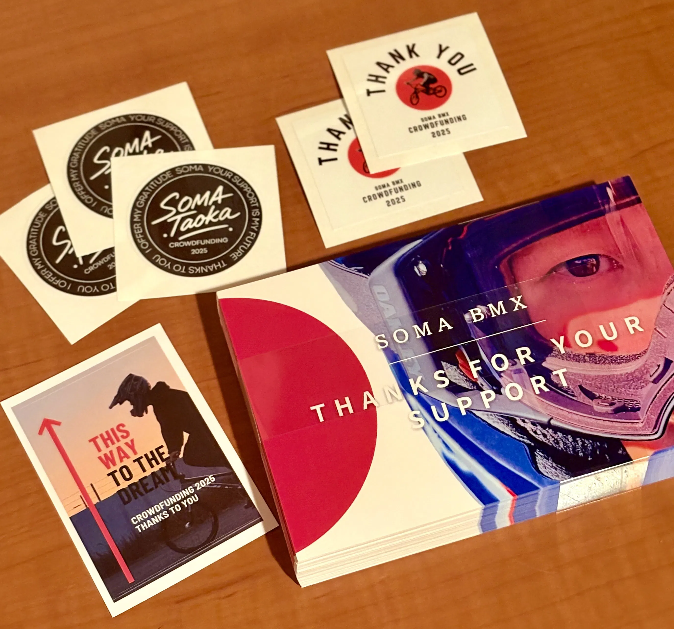 2025/08/27 21:18ご支援いただいた皆さまへクラウドファンディングのリターンが完成し、順次発送を始めました!ステッカーは応援してくださる方の手元に届くことを思い浮かべながら、一つひとつ大切に準備しました。僕自身、発送作業をしながら、「こんなにたくさんの方が応援してくれているんだ」と実感し、改めて感謝の気持ちでいっぱいです。みなさんの応援が、日々の練習やこれからの挑戦の大きな力になっています。本当にありがとうございます。これからもレースに向けて努力し、世界に挑戦できるように頑張っていきますので、引き続き応援していただけると嬉しいです!田岡 颯真 もっと見る