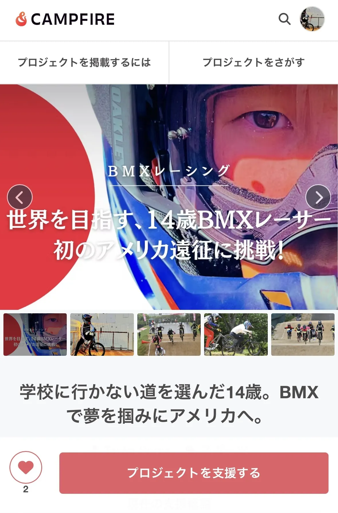 ①まずはトップ画面から、プロジェクトを支援するをクリック
