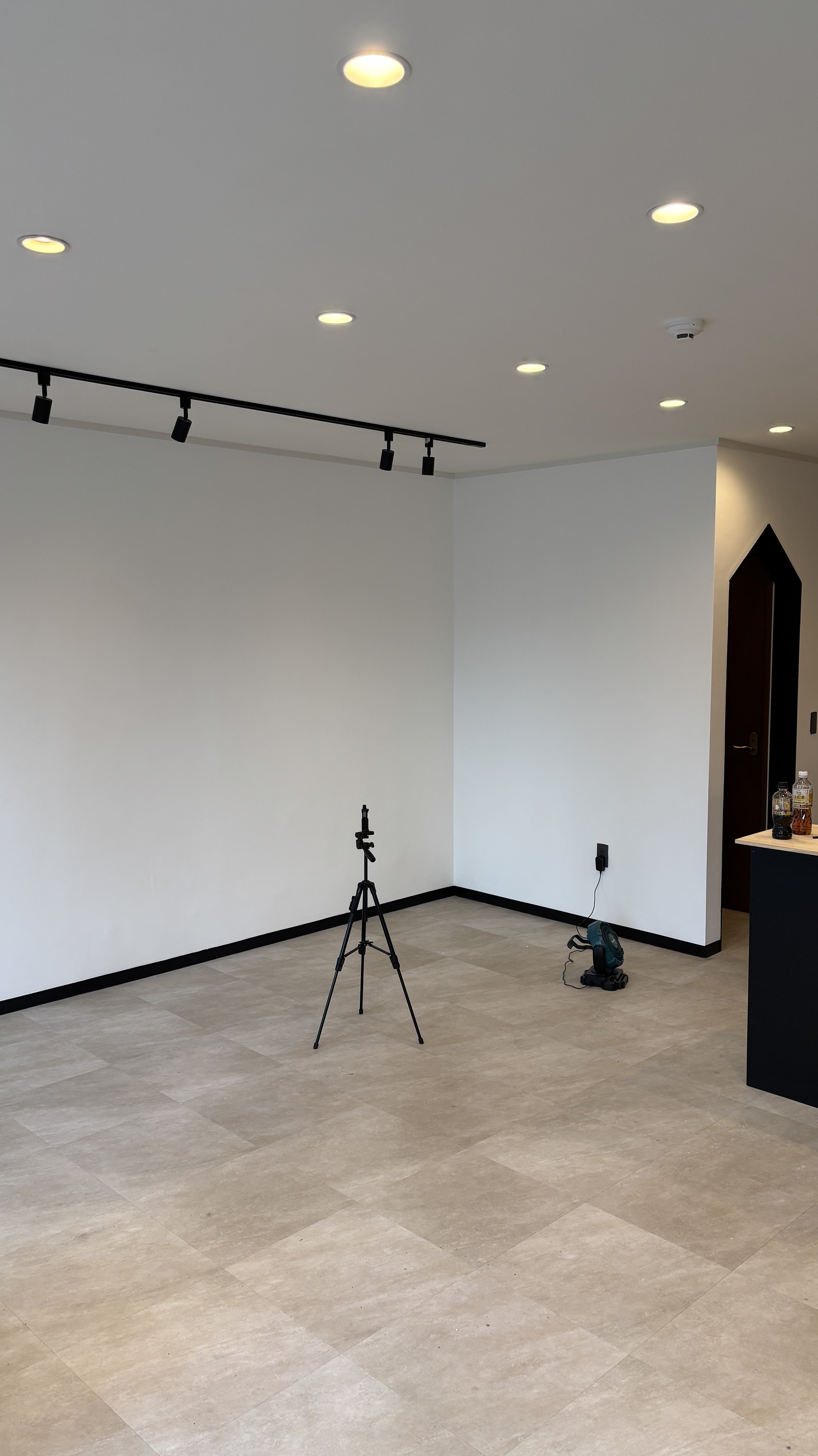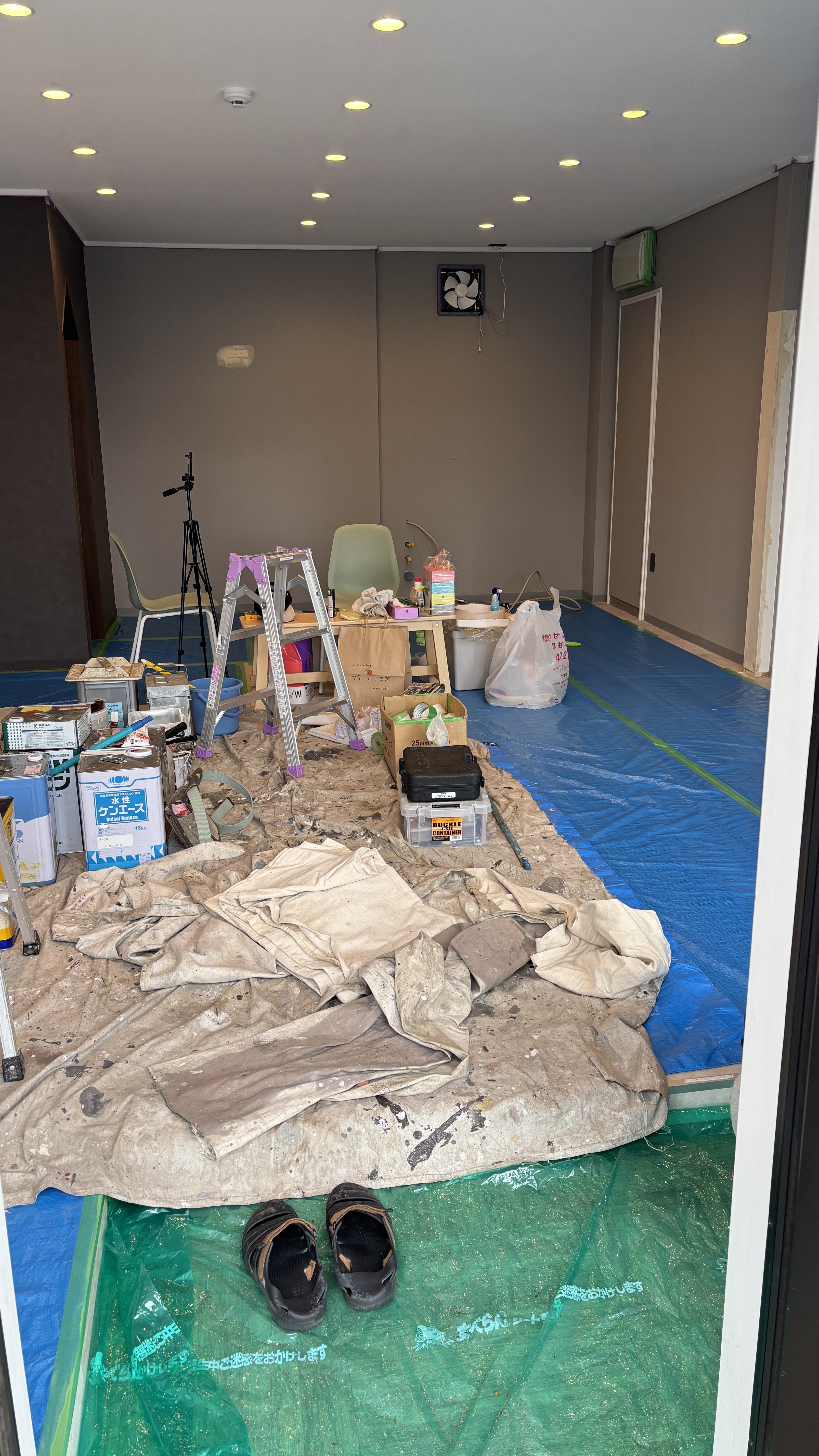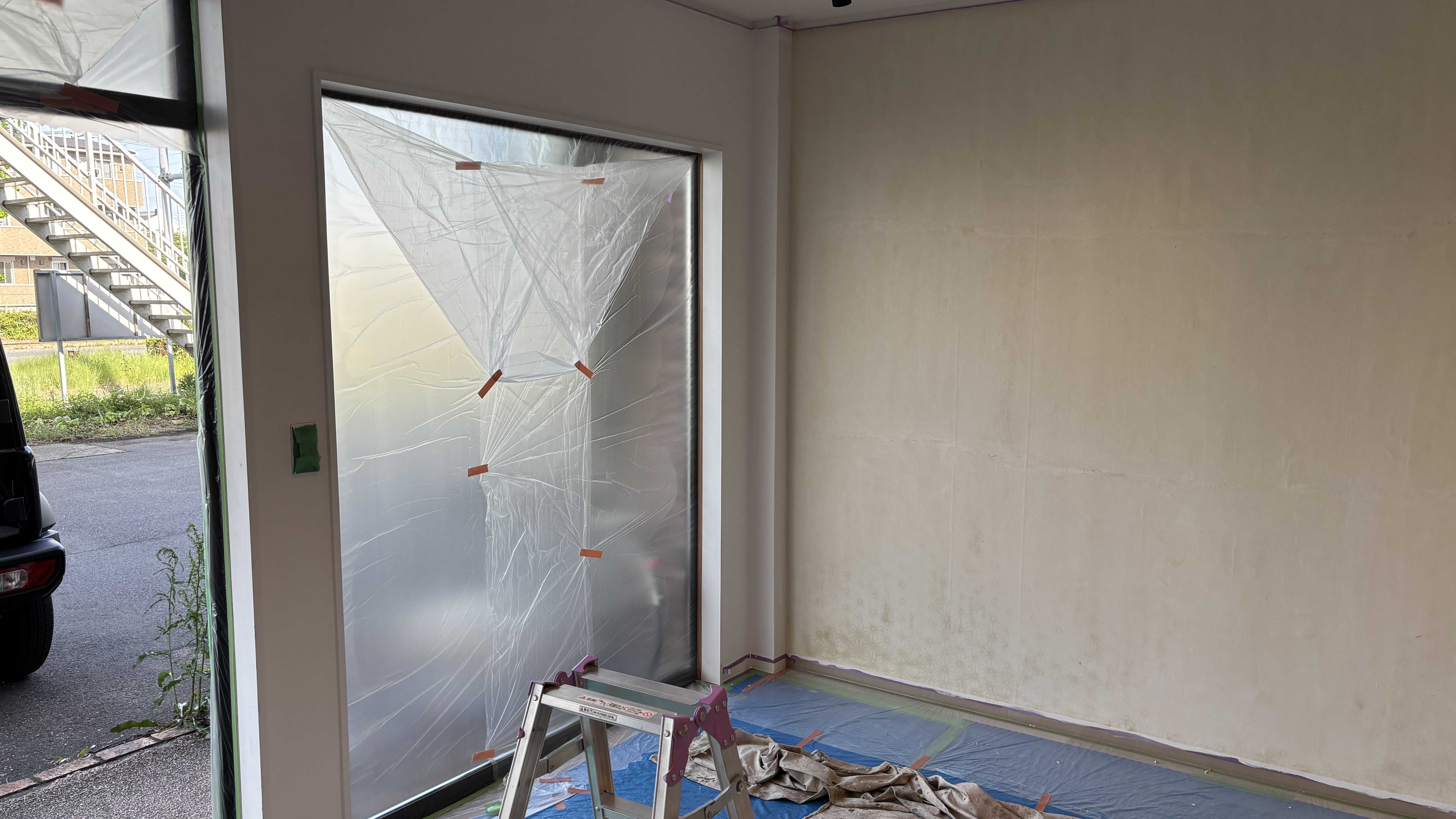 大枠は壁を塗る、仕切りとレジカウンターを作るという作業でしたが前テナントの壁の模様がなかなか消えずに苦戦。