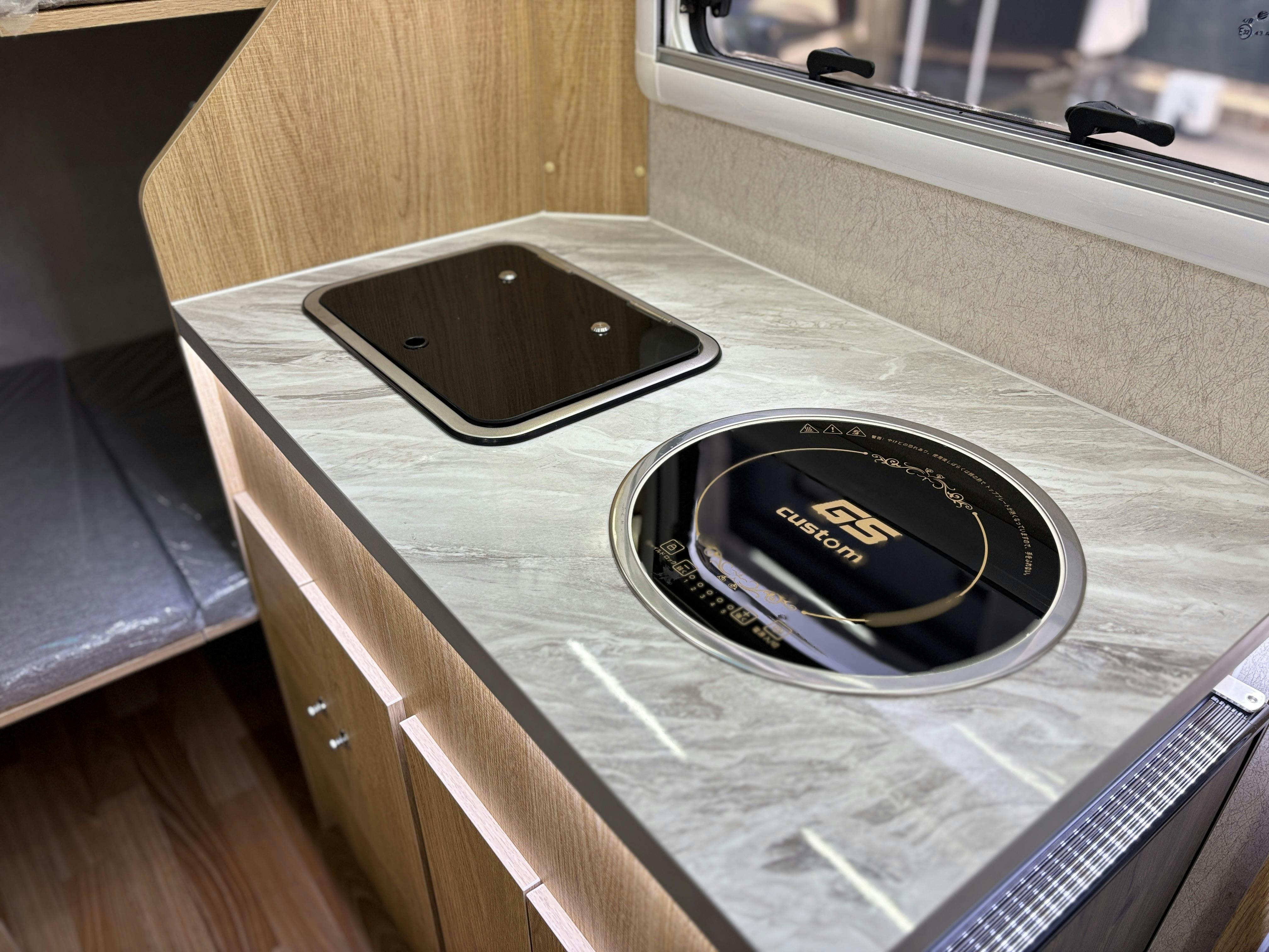 シンク、IH、レンジと調理設備も備わっています(現在の車両にはシンクのみ)