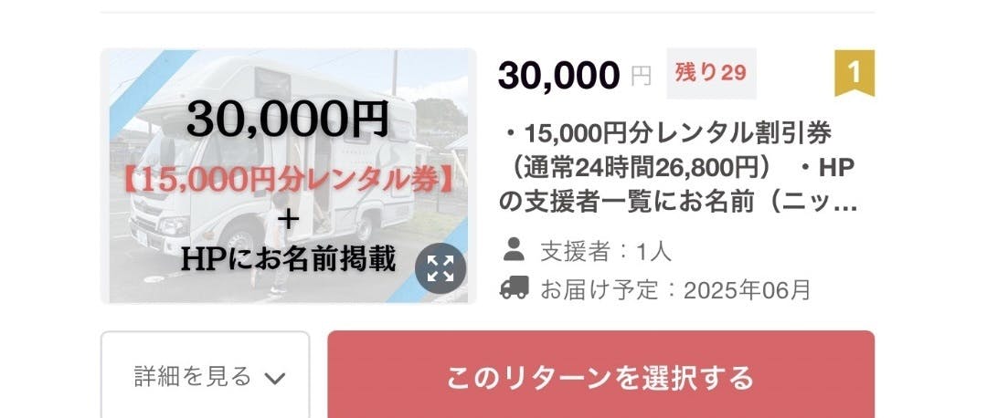 リターン(ご支援に対する返礼品)には当店でお使いいただけるレンタル割引券はもちろん、