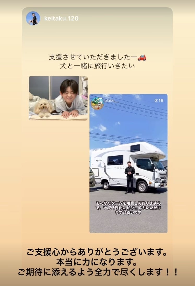 この度ご支援いただき誠にありがとうございます。