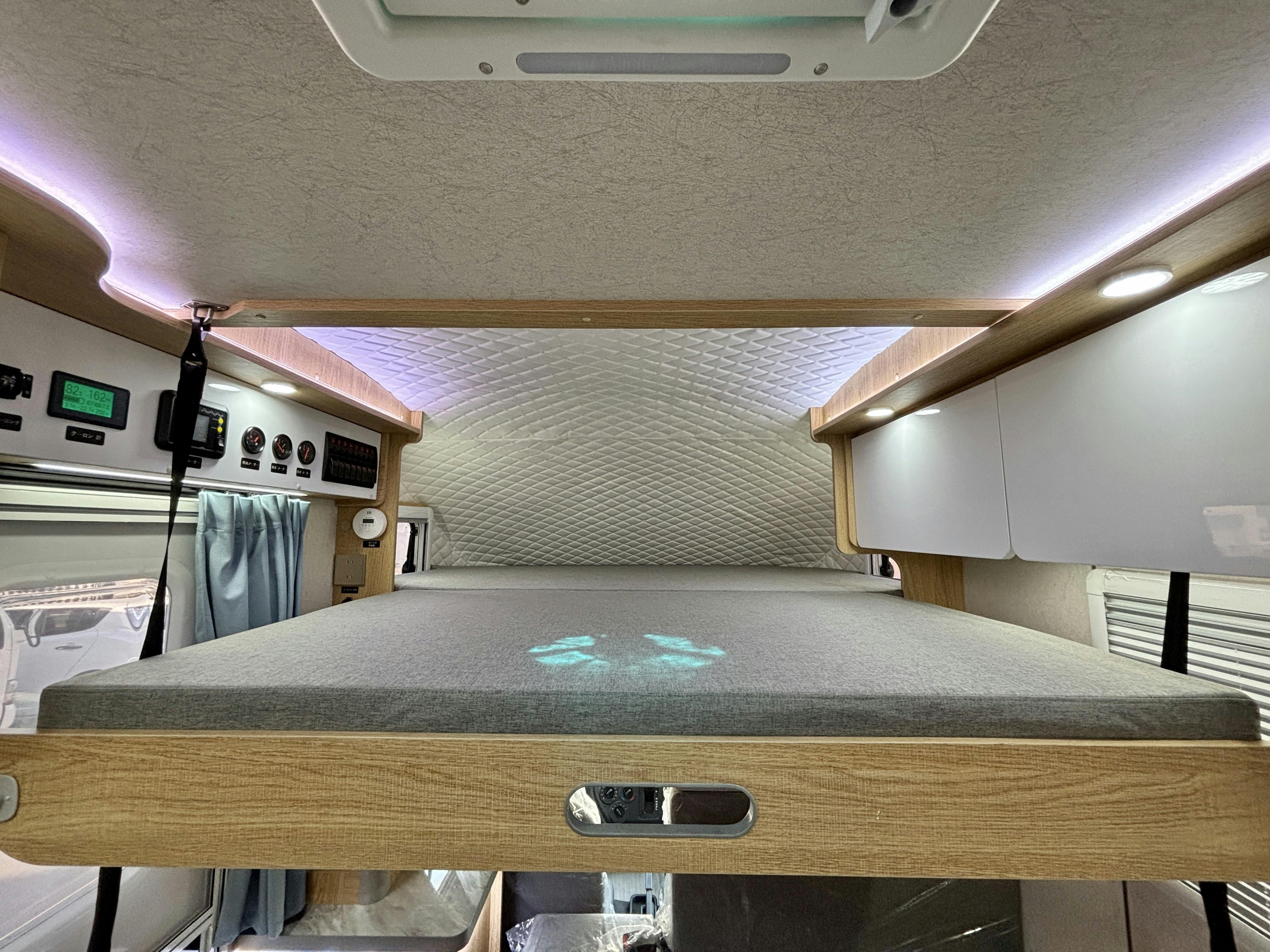 これぞキャンピングカーの象徴であるバンクベッド(運転席・助手席の上)