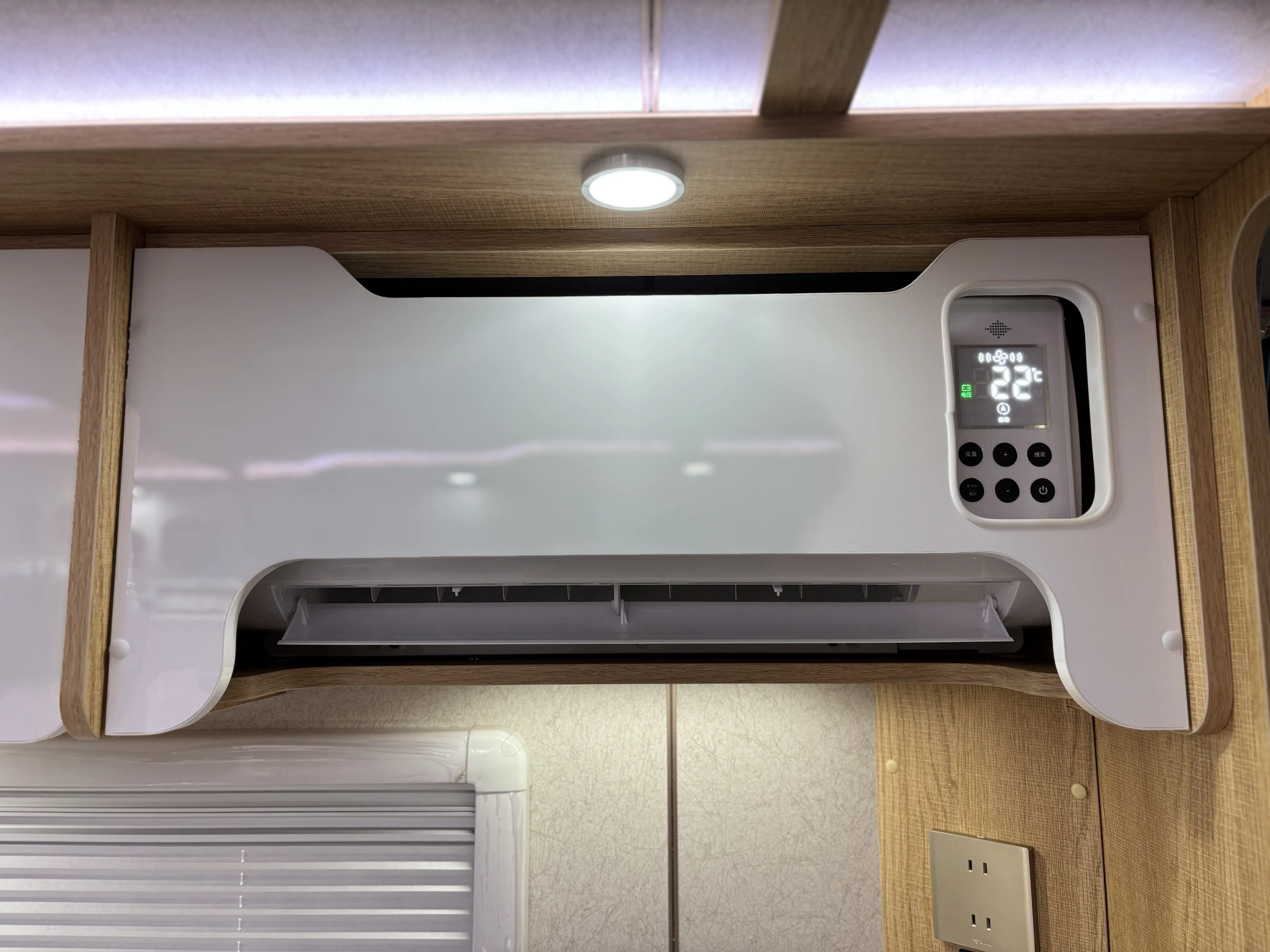 今あるキャンピングカーは家庭用ルームエアコンが付いていますが【外部からのコンセント接続】 がエアコン稼働の必須条件です。