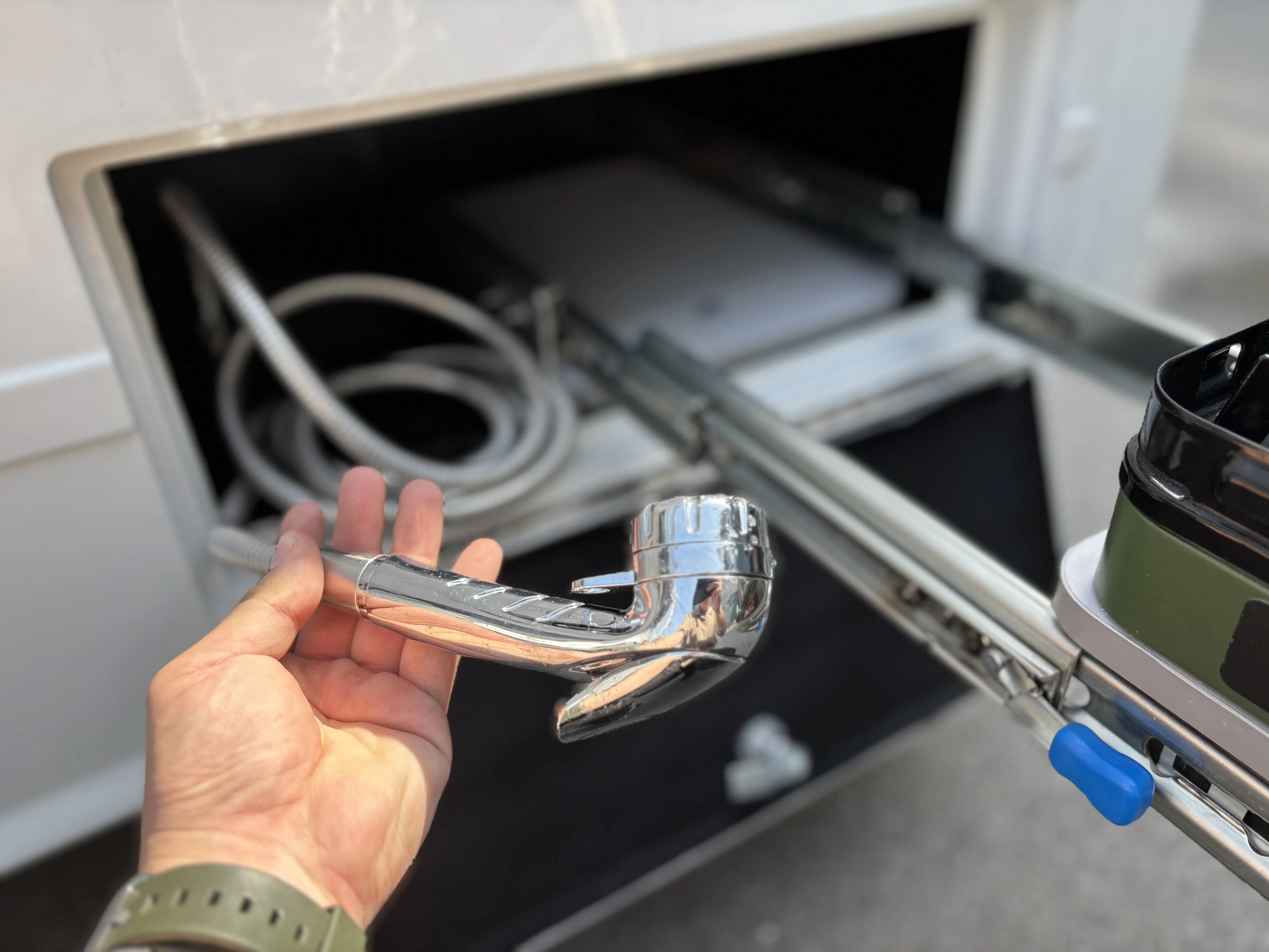 なんと、車の外でシャワーが使えます。