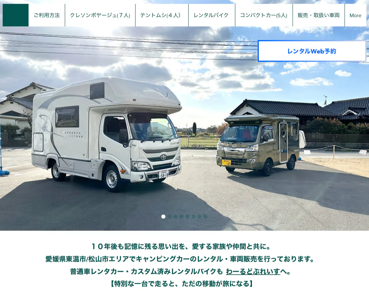 初めまして。愛媛県東温市でキャンピングカーのレンタル事業【わーるどぷれいす】を運営しております