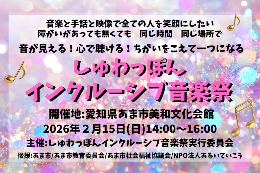 🎉 2026年2月15日 |しゅわっぽんインクルーシブ音楽祭開催(あま市美和文化会館)
