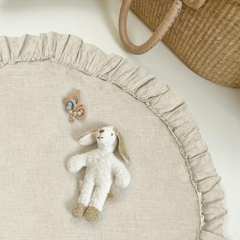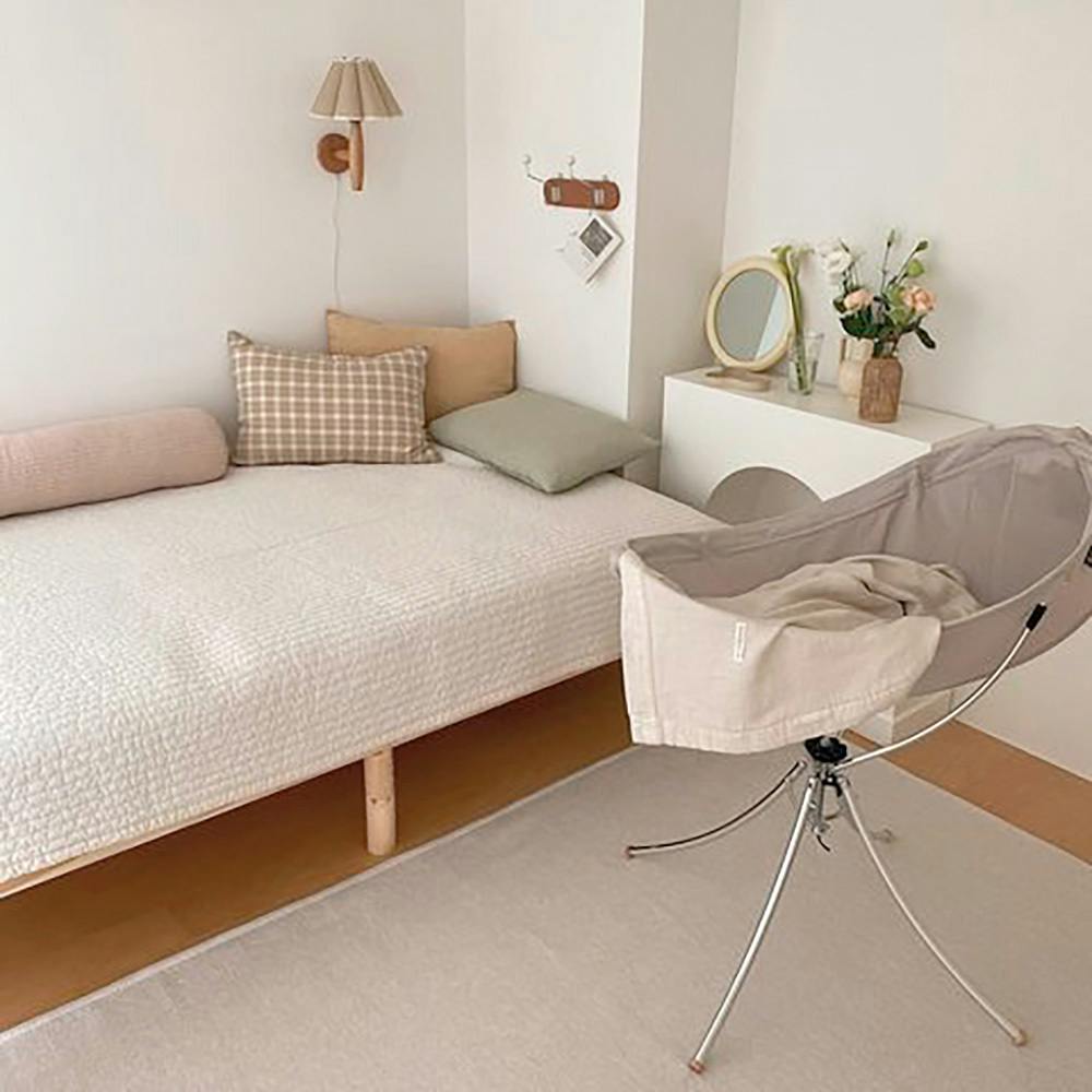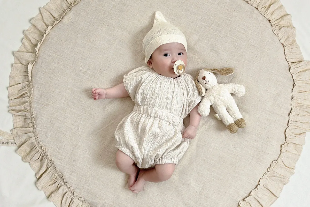 赤ちゃんを寝かせたり、おむつ替え、遊び時間のプレイマット、 子ども部屋のアクセントラグとしても使える万能アイテム。 お気に入りのぬいぐるみやカードと一緒に、 月齢フォトにも映える、おしゃれな空間を演出できます。