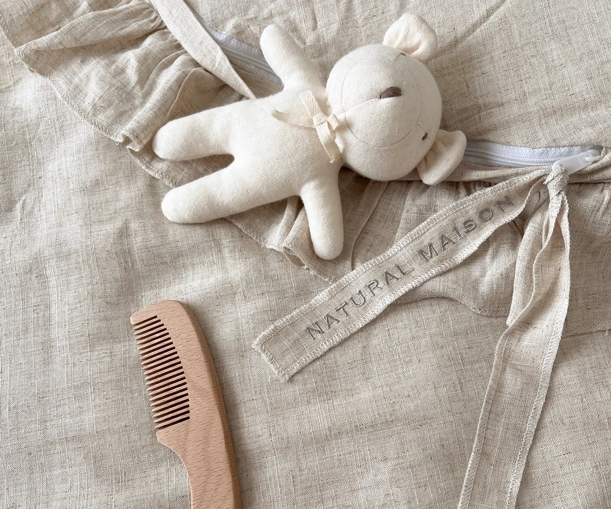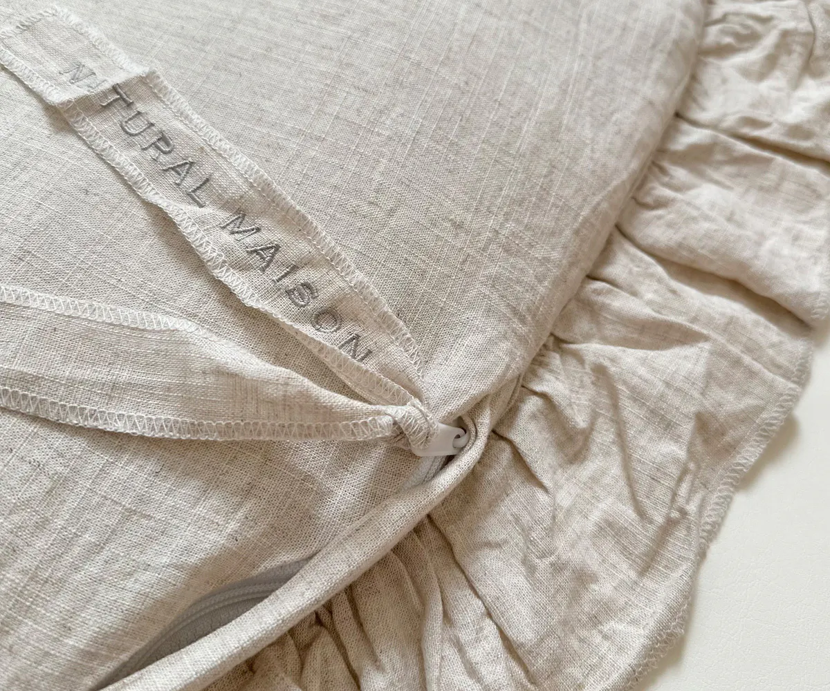 リネン混の生地は風合いがあり、とってもおしゃれ。 お洗濯後も良い味が出ます。